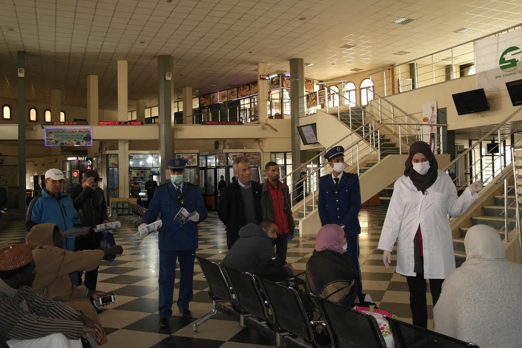نظم أمن ولاية الجلفة يوم 19 مارس 2020  حملة توعوية تحسيسية حول “الوقاية من إنتشار فيروس كورنا” على مستوى المحطة البرية لنقل المسافرين مع توزيع مطويات توعوية خاصة بهذا الفيروس بمعية رئيسة الوحدة الطبية بأمن ولاية الجلفة، تضمنت شرح الأعراض الشائعة للفيروس مع تقديم جملة من النصائح و الإرشادات للوقاية من هذا الفيروس مع التذكير بالأرقام الخضراء الموضوعة تحت تصرفهم .