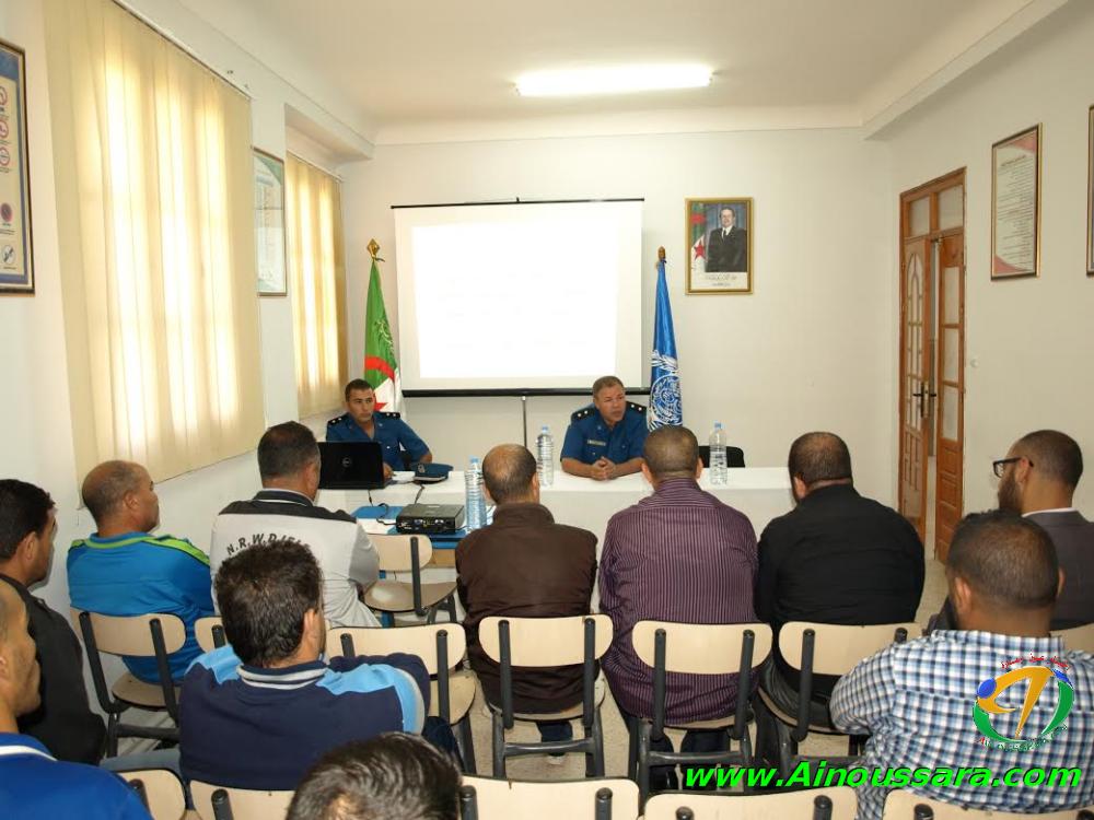 نظم أمن ولاية الجلفة خلال الأسبوع المنصرم بمركز التكوين والتحضير بأمن ولاية الجلفة، لقاءً تحسيسياً لشرح التدابير الجديدة المتخذة من طرف المديرية العامة للأمن الوطني لتأمين مختلف التظاهرات الرياضية، وفقاً للقانون 05/2013 المؤرخ في 23 يوليو 2013 المتعلق بتنظيم الأنشطة البدنية والرياضية وتطويرها، لفائدة مختلف مدراء الهياكل الرياضية بالولاية، رؤساء مختلف الفرق الرياضية، بعض الرياضيين من مختلف التخصصات والأصناف، بحضور ممثل عن مديرية الشباب والرياضة بالولاية.