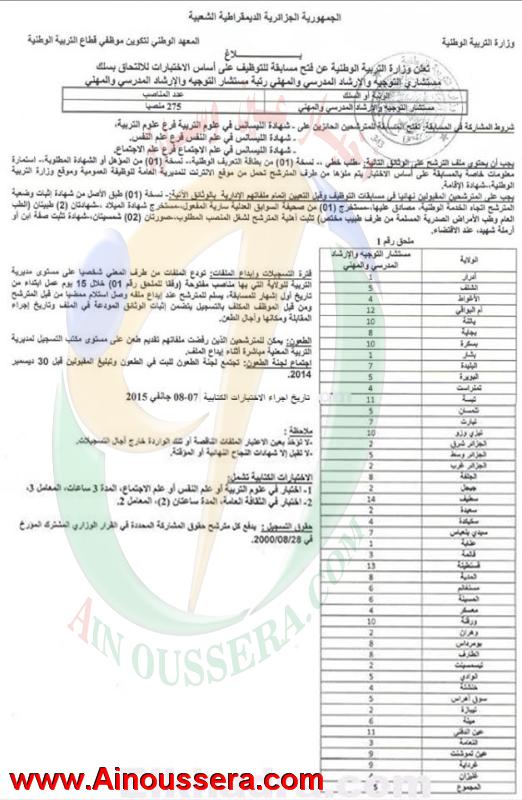 تصفّح المقالات إعـــــــــلان عن توظيف بالمدرسة الوطنية العليا للمناجمنت بالقليعة. اعلان توظيف و عمل المستخدمين الشبيهين بالمديرية العامة للأمن الوطني توظف (4394 منصب) ديسمبر 2014.