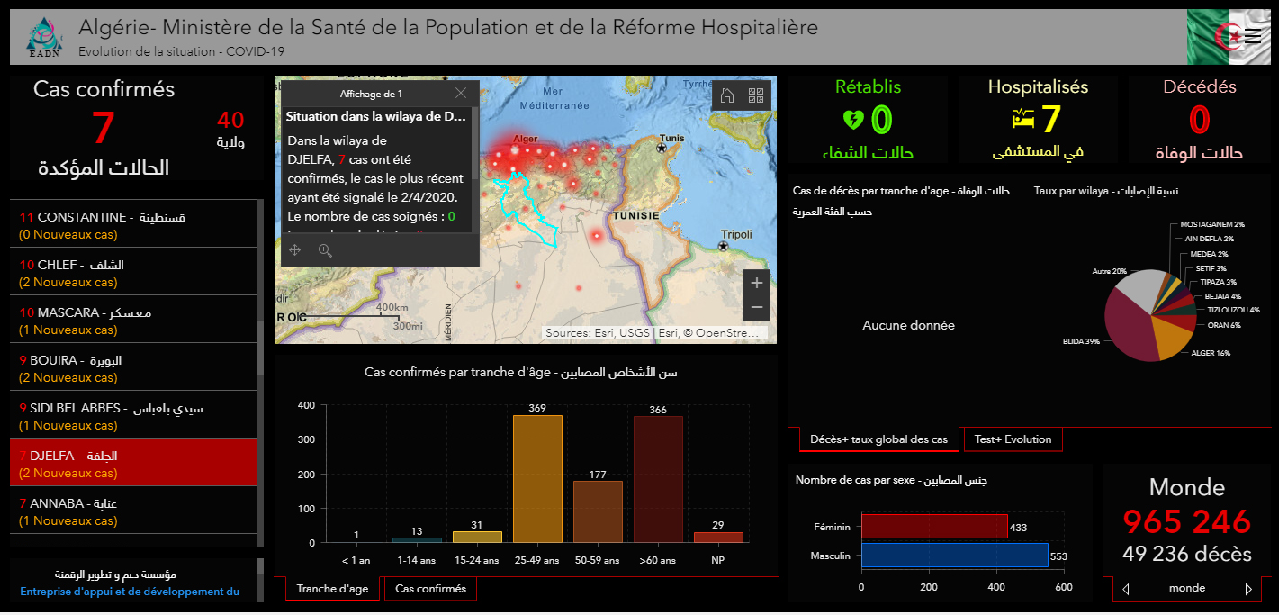 وقالت وزارة الصحة الجزائرية عبر موقعها المخصص لمتابعة انتشار الفيروس بكامل ولايات الوطن أنها سجلت خلال ال 24 ساعة الأخيرة زيادة عدد المصابين ب 139 حالة جديد مع تسجيل 25 وفاة جديدة ليرتفع العدد الاجمالي للوفيات الى 83 حالة .