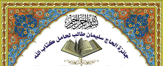 أعلنت اللجنة المنظمة لمسابقة جائزة الحاج سليمان طالب لحامل كتاب الله في طبعتها الثانية أن التسجيلات لهذه المسابقة قد انطلقت وتستمر لغاية 28 من شهر شعبان ، حيث رصدت لها جائزة 100 مليون سنتيم مقسمة بين الفائزين الثلاثة ، فعلى الراغبين في المشاركة قراءة شروطها الموجودة بالأسفل وحظ موفق للجميع.