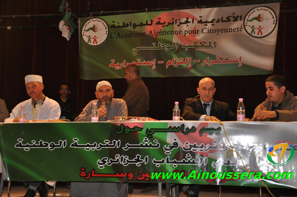 بمناسبة يوم العلم ، نظمت الأكاديمية الجزائرية للمواطنة يوما دراسيا بعين وسارة تحت عنوان ” دور العلماء الجزائريين في نشر التربية الوطنية لدى الشباب الجزائري ” ، احتضنته قاعة السينما ونشطه كل من الشيخ ” أبو القاسم العباسي ” والأستاذ ” بونيف الحاج ” والشيخ ” حمزة لخضر ” وبحضور عدد من الأساتذة والمعلمين ، أعضاء من المجلس البلدي وممثلي المجتمع المدني.