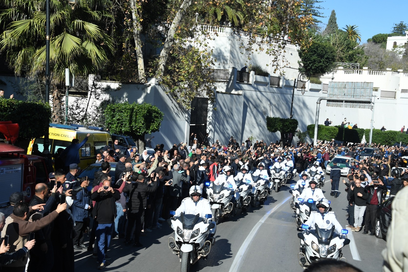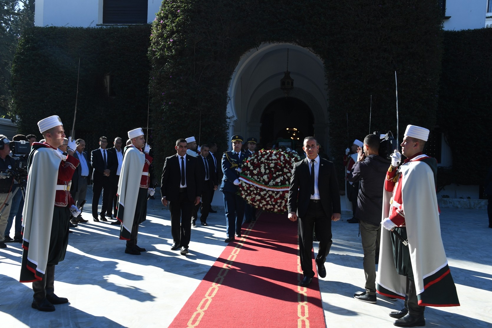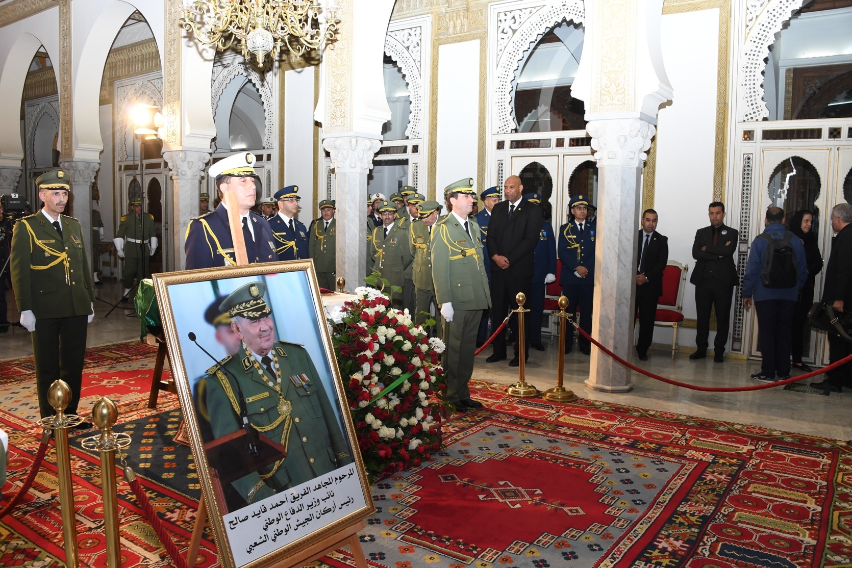 وكان مسؤولون سامون في الدولة وفي الجيش, يتقدمهم رئيس الجمهورية, عبد المجيد تبون ورئيس أركان الجيش الوطني الشعبي بالنيابة, اللواء سعيد شنقريحة, وأعضاء السلك الدبلوماسي المعتمد بالجزائر بالإضافة إلى أفراد عائلته ومواطنين قد ترحموا على جثمان الفقيد الذي عرض بقصر الشعب.