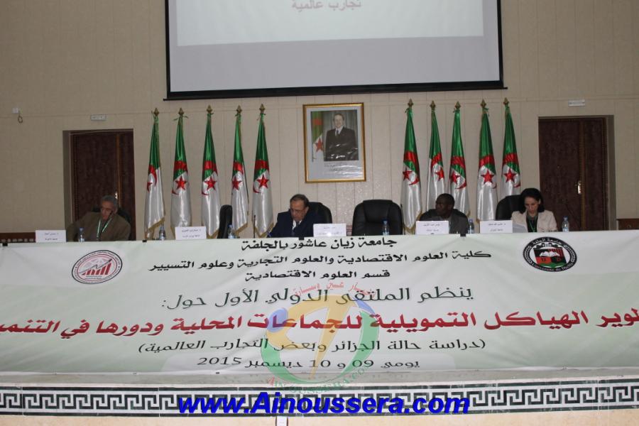 تحتضن قاعة المحاضرات الكبرى بجامعة الشهيد زيان عاشور بالجلفة وعلى مدار يومين الملتقى الدولي الأول حول تطوير الهياكل التمويلية للجماعات المحلية ودورها في التنمية الذي تنظمه كلية العلوم الاقتصادية والعلوم التجارية وعلوم التسيير.