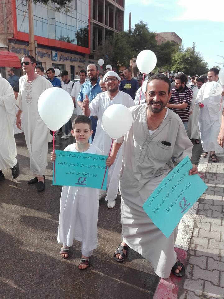 وقد كان شباب قد أطلقوا في الوهلة الأولى المبادرة على أساس حملة فيسبوكية عبر صفحاتهم وحساباتهم وذلك لإسماع صوتهم إلى السلطات العليا بالبلاد من أجل رفع التجميد عن مشروع مركز مكافحة السرطان الذي كان مبرمجا سنة 2014 وتم تجميده في السنة الموالية، إلّا أن الأمر لم يتوقّف عند هذا الحد بعدما بدأت نداءات عبر الفيسبوك تدعوا إلى النزول للميدان من أجل نيل هذا المطلب الإنساني الهام للمنطقة، وهو ما حدث بالفعل بعدما تم الإعلان عن مسيرة بيضاء صامتة إنطلاقا من مقر البلدية إلى غاية مقر الولاية، وذلك للتأكيد على أن مركز مكافحة السرطان أحد أهم المطالب في رزنامة طموحات الساكنة.