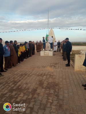 بعد ذلك توجه الجميع كبيرا وصغيرا إلى النصب التذكاري لرفع راية العلم الوطني عند الساعة الصفر(00:00). لترفع بعد ذلك أصوات التكبير على أرواح شهداء الوطن والعلم الوطني يرفرف عاليا في سماء الحرية.