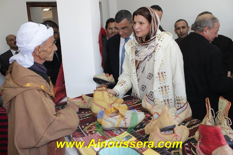 وببلدية مسعد تفقدت السيدة الوزيرة رفقة السيد الوالي والوفد المرافق لهما مركز تثمين المهارات المحلية وافتتحت به الدورة التكوينية حول التصميم في النسيج التقليدي وقد دعت السيدة الوزيرة الى ضرورة احياء وتثمين المنتجات التقليدية ودعم وتشجيع المراة الحرفية.