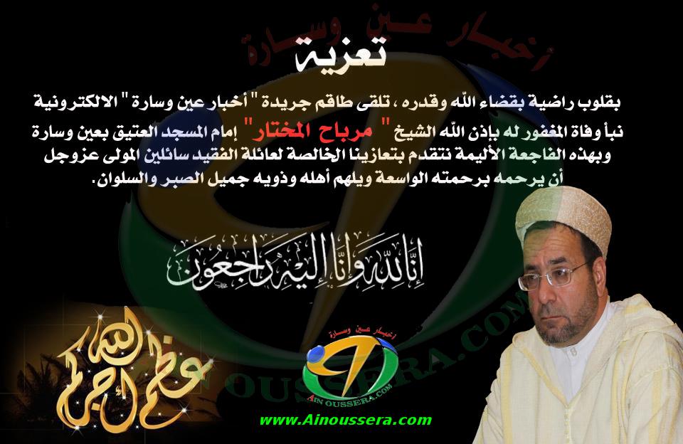 الشيخ ” المختار مربـــــــــــــــــاح ” إمام المسجد العتيق بعين وسارة في ذمة الله.