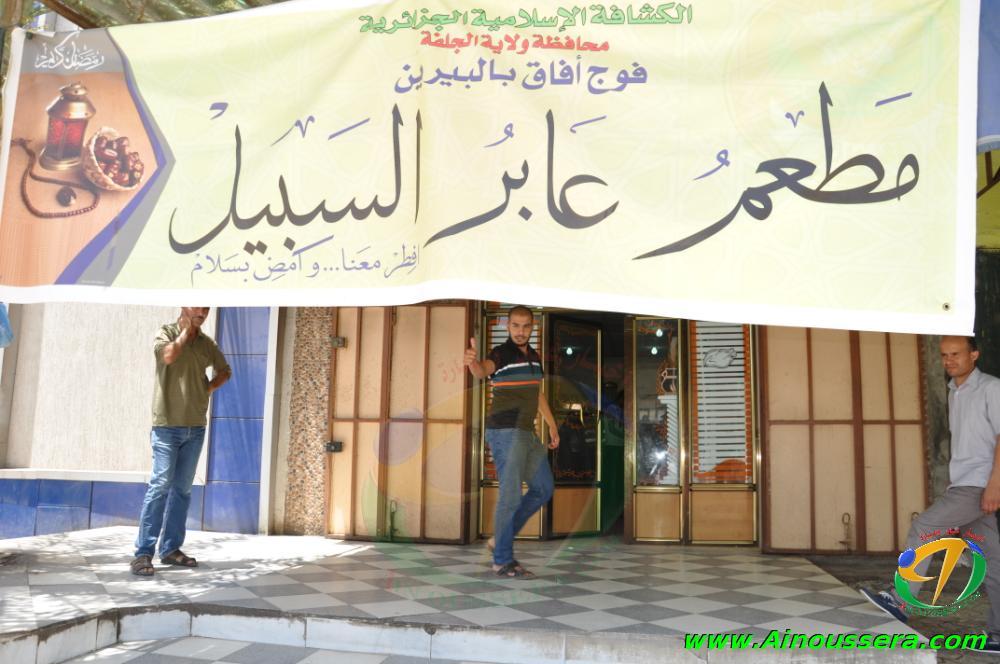 كشف أمسية اليوم محافظ الكشافة الاسلامية الجزائرية بالجلفة السيد ” ثامر ” خلال زيارة قادته لبلدية البيرين مجمل نشاطات فروع الكشافة عبر تراب الولاية خلال الشهر الفضيل والتي تمثلت في افتتاح 11 مطعما لعابري السبيل ممولة من قبل ولاية الجلفة بكل من الجلفة ، عين وسارة ، حاسي بحبح ، مسعد ، البيرين ، حد الصحاري ، عين افقة ، فيض البطمة ، دار الشيوخ.