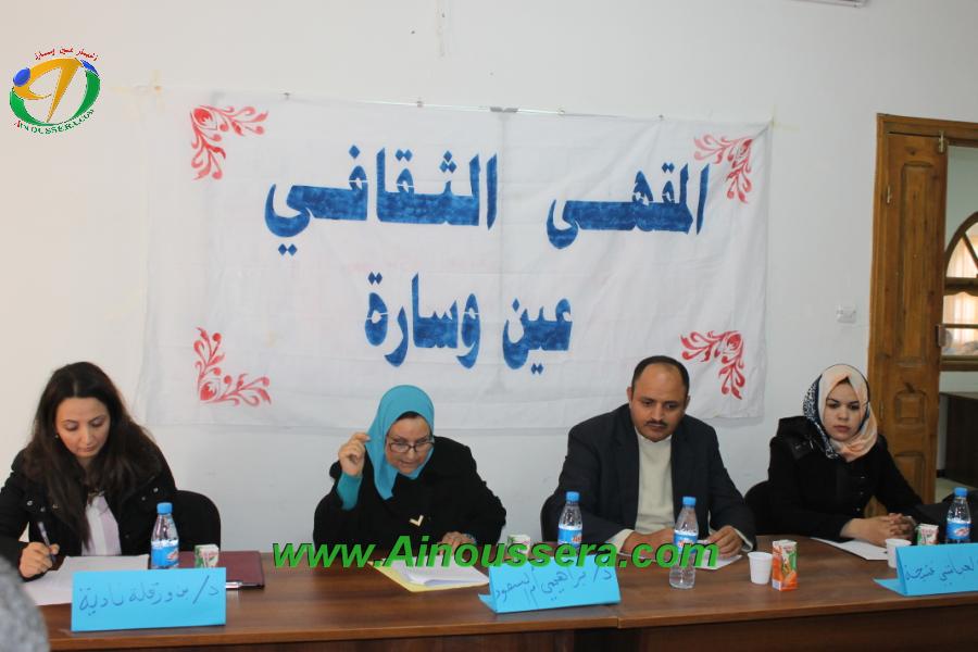 نظم المقهى الثقافي عين وسارة وبالتنسيق مع المكتبة العمومية للمطالعة ندوة حول موضوع ” المرأة الجزائرية والراهن ” وذلك تزامنا واحتفالات العالم بيوم القضاء على العنف ضد المرأة المصادف للـ 25 نوفمبر منن كل سنة ، حيث اختار القائمون على المقهى ثلاثة مواضيع لتكون محل دراسة ونقاش أطرها أساتذة من جامعة زيان عاشور بالجلفة.