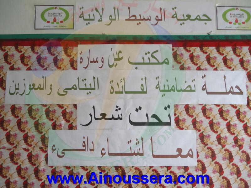 نظم المكتب البلدي لجمعية الوسيط حملة تضامنية لفائدة اليتامى والمعوزين والتي تهدف لتوفير ألبسة ، أغطية ، أفرشة ومواد غذائية لفئة اليتامى والمعوزين لمواجهة هذه الأيام الباردة من فصل الشتاء ، حيث قام أعضاء الجمعية بطرق أبواب فاعلي الخير من أجل المساهمة في انجاح هذه المبادرة التي تستهدف هذه الفئات الهشة من المجتمع.