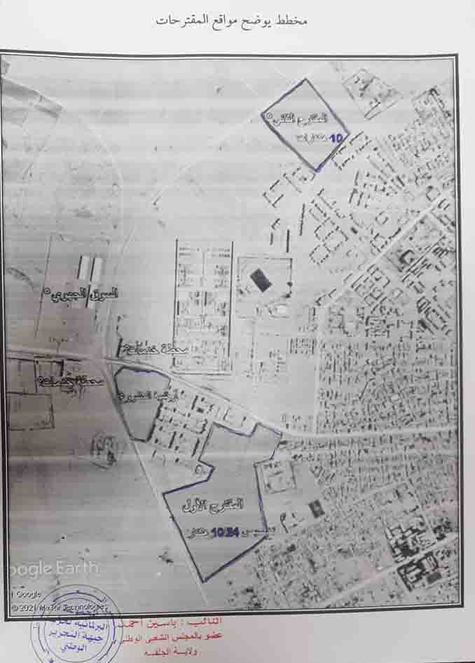 كما اقترح النائب أرضية أخرى بمحاذاة الطريق الاجتنابي بمساحة 10 هكتارات تسمح بالتوسعة في المستقبل لاستيعاب الزيادة في عدد السكان وكذا كونه يصبح مستشفى الولاية المنتدبة.