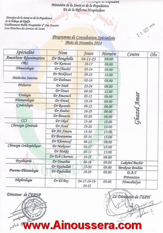 من أجل تقديم المعلومة للمواطن بكل بساطة وسلاسة ، ارتأى موقع ” أخبار عين وسارة ” أن يُقدم خدمة تُمكن المواطن من معرفة جدول تواريخ مداومة الأطباء الأخصائيين بالعيادة متعددة الخدمات غزال عمر كمرحلة أولى لتتواصل مع بقية الفروع الأخرى ، وسنخصص قسم الاستشارات الطبية بالموقع للاطلاع على كل جديد .