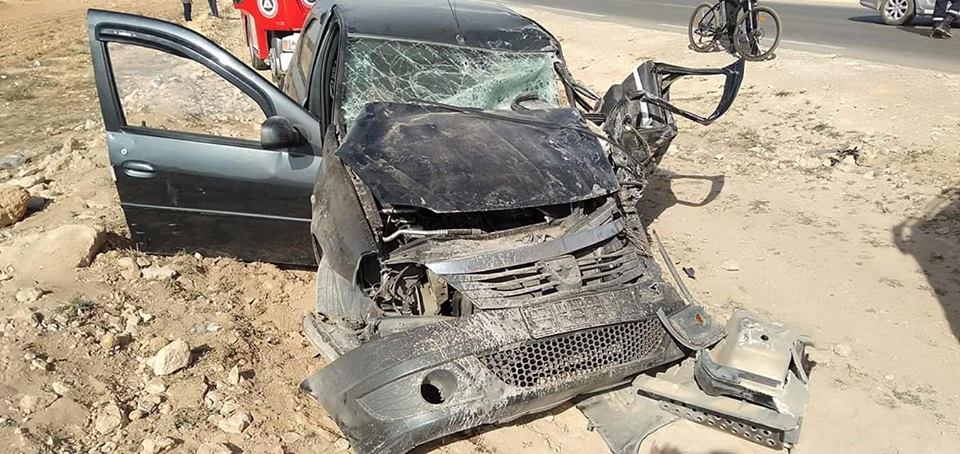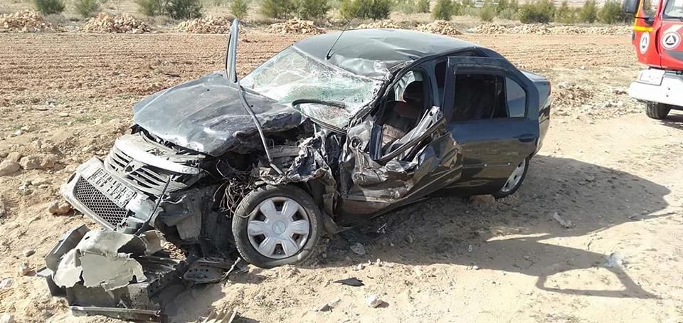 وأوضحت مصالح الحماية المدنية ممثلة في الوحدة الثانوية لعين وسارة أنه في صباح اليوم في حدود الساعة 10.00 وقع حادث مرور اليم يتمثل في اصطدام عنيف بين شاحة شاكمان وسيارة سياحية من نوع لوڨان حيث خلف الحادث وفاة شخص يبلغ من 52 سنة و7 جرحى تتراوح اعمارهم مابين 3 سنوات الى 54 سنة ، حيث تم تقديم الاسعافات الاولية ونقل المصابين على جناح السرعة الى المستشفى  بعين وسارة .