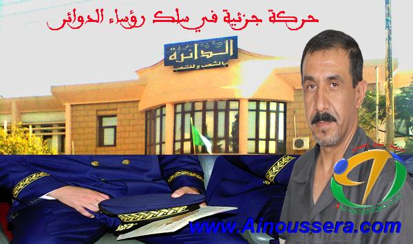 أجرى رئيس الجمهورية السيد عبد العزيز بوتفليقة صبيحة اليوم الثلاثاء، حركة تغييرات جزئية في سلك رؤساء الدوائر شملت كامل ولايات الوطن ، حيث تم تحويل 90 رئيس دائرة بينهم 7 نساء إلى دوائر أخرى، وإحالة 31 رئيس دائرة على التقاعد ، كما تم ترقية 92 ما بين رؤساء مصالح بالولايات وملحقون بالديوان وأمناء عامون بالبلديات إلى رؤساء دوائر