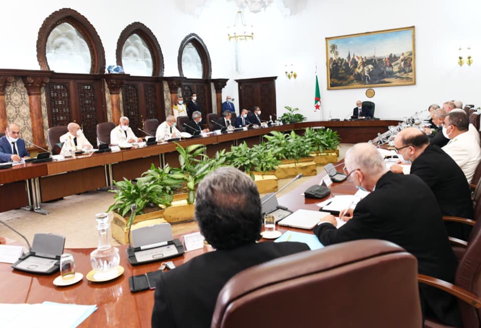 تطرق رئيس الجمهورية في مستهل الاجتماع إلى الوضعية الصحية السائدة، فعبّر بادئ الأمر عن ارتياحه لارتفاع حالات المتعافين التي أصبحت تعدّ بالمئات، واستقرار المعدل اليومي للوفيات دون العشر وفيات، لكنّه عبّر عن قلقه أمام تزايد عدد الإصابات بالجائحة، نتيجة اكتظاظ الهياكل الصحية في بعض الولايات، وسوء توزيع الإمكانات بين المستشفيات، لا سيما من حيث عدد الأسرة المتوفرة، وانعكاس ذلك على طريقة التكفّل بالمصابين بالوباء، مستغربا أن يحدث ذلك رغم توفير العدد الكافي من الأسرة الإستشفائية مثلما هو حاصل في العاصمة، حيث نجد في المستشفيات الـثلاثة عشر 5700 سرير منها فقط 743 سرير محجوزة للمصابين بالوباء، وكذلك توفر كلّ المستلزمات الطبية والمواد الأولية للصناعات الصيدلانية بالكميات الكافية، والزيادة الملحوظة في المخابر، ووسائل الفحص والكشف، ليستنتج بأنّ المسؤولية إذا كانت قائمة بين المسيّرين المحليين من حيث عدم التنسيق فيما بينهم، وأحيانا مع السلطات الوصية، فهي أيضا مشتركة مع المواطنين الذين لا يحترمون الإجراءات الوقائية المعمول بها في العالم، وسجل السيد الرئيس نزعتين في أوساط الشعب، الأولى تدعو إلى تشديد الإجراءات حتّى بإعادة تطبيق الحجر الكلّي وهي في حالة هلع، ونزعة أخرى لا تبالي بخطورة التمادي في الاستهانة بإجراءات الوقاية؛ وهنا، طلب رئيس الجمهورية إعادة النظر في استراتيجية الاتصال التي يجب أن تتجاوز مجرّد سرد الأرقام، إلى الشرح الوافي باستعمال الإذاعات المحلية وأبلغ وسائل وصور الإقناع لتوعية المواطنين بالأخطار المترتّبة عن عدم التقيّد بإجراءات التباعد الجسدي، والوقاية الصارمة في أماكن التجمع والإكتظاظ ، وجدّد تعليماته بالتعامل بحزم مع المخالفين وتشديد العقوبات عليهم.