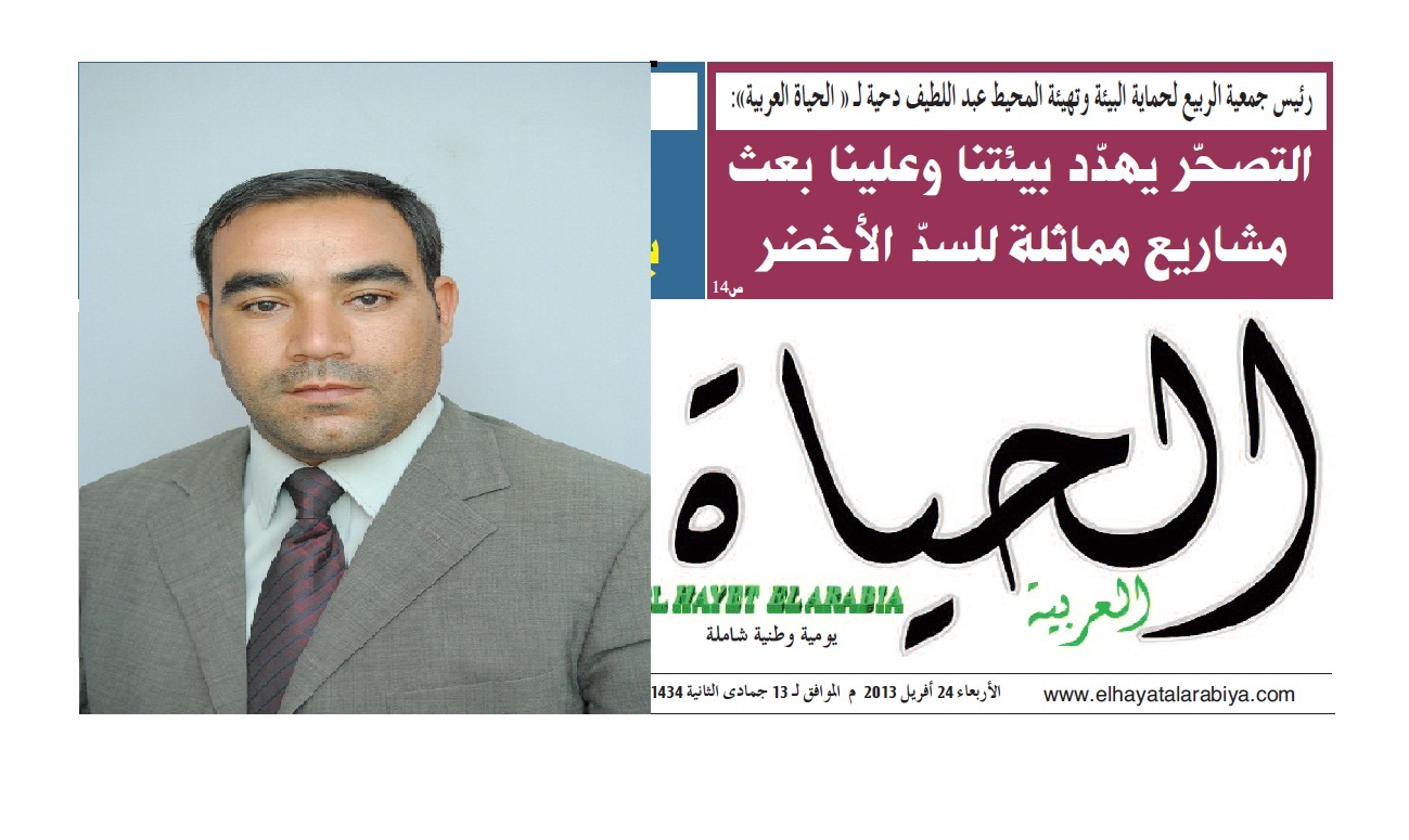 تعرّف البيئة على أنّها  الأشياء التي من حولنا والتي تؤثر على بقاء الكائنات الحية على سطح الأرض والتي تشمل الماء والهواء والتربة والمعادن والمناخ والكائنات أنفسهم، لكن إن حدث وأن تأثّر عنصر واحد من هذه العناصر فستتخلخل معه كلّ المنظومة البيئية، ويعدّ واقع البيئة في الجزائر بشهادة مختصين وعلماء في المجال متدهور جدّا نظرا لعديد الأسباب وعديد الظواهر، كالنمو الديمغرافي والثلوث و زحف كبير للرمال من الجنوب باتجاه الشمال و الغلاف أو الغطاء النباتي ضعيف و في طريق الزوال نتيجة لعامل الجفاف و زحف الأسمنت أو التعمير و البناء و السياسة اللآتشجير التي كانت في زمن سابق من أولويات و أبجديات العمل التطوعي (حتى نهاية السبعينات)، هذا ما دفع ببعض المتطوعين لتكوين جمعيات تعنى بحماية البيئة والحفاظ على أبجدياتها، ومن بين هاته الأخير جمعية الربيع لحماية البيئة وتهيئة المحيط بعين وسارة بولاية الجلفة، والتي كان للحياة العربية مع رئيسها عبد اللطيف دحية الحوار التالي: