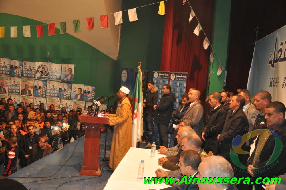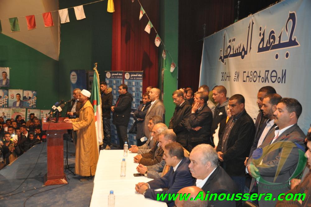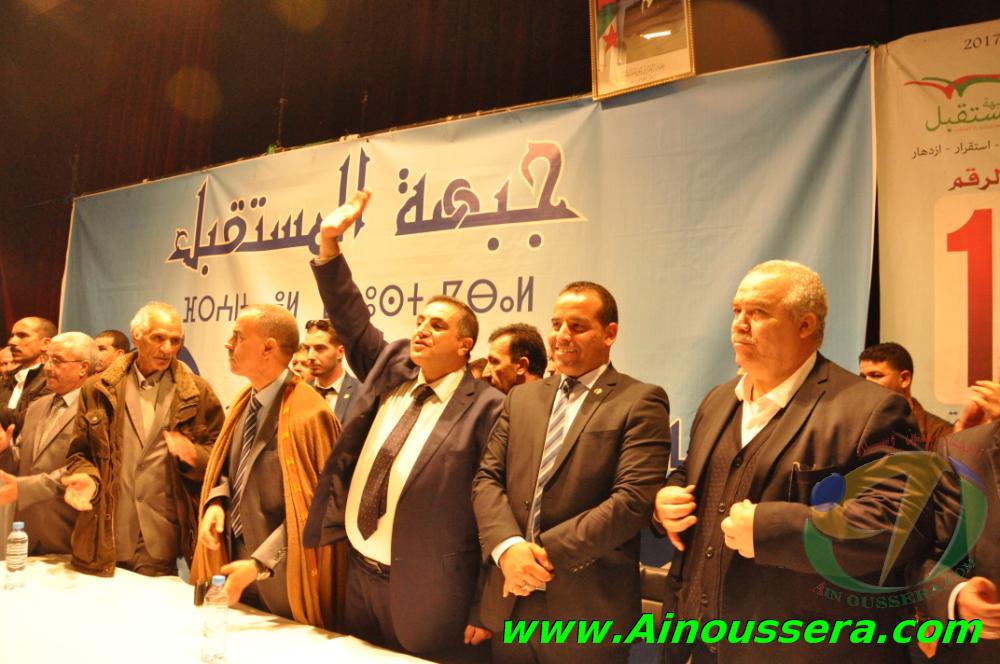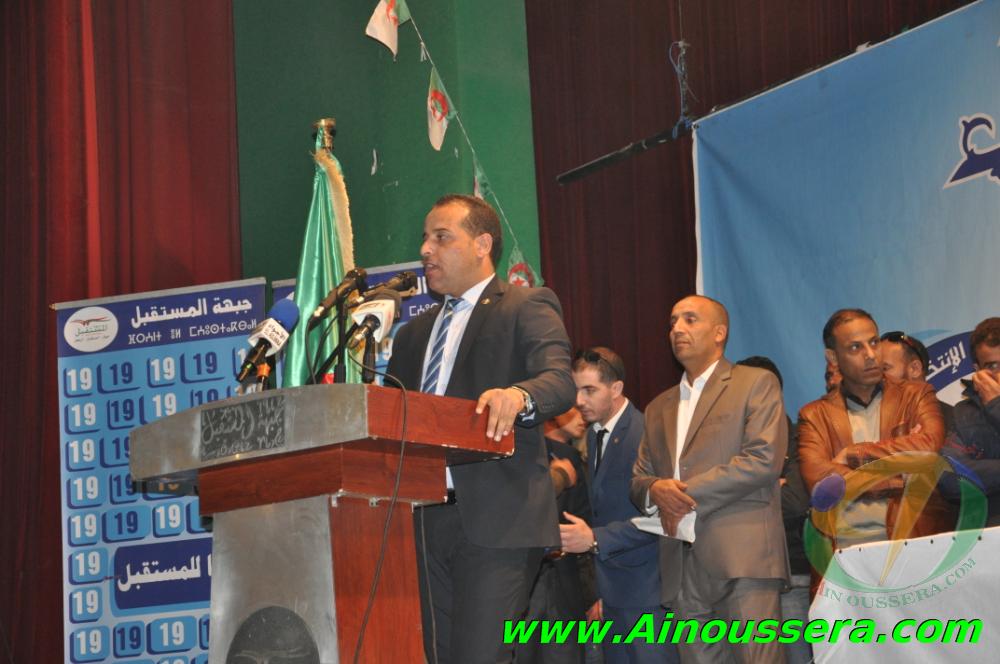 وبعد أن رافع مطولا عن برنامج حزبه الذي يهدف إلى إصلاح الوضع في الجزائر ، تحدث رئيس الحزب عن الاسماء المرشحة ضمن قوائم الحزب للمحليات المقبلة والتي قال عنها أنه تم اختيارها بدون تدخل من القيادة وتُرك الخيار للقاعدة لاختيار الأصلح لتمثيل المواطن أحسن تمثيل ، ليختتم كلمته بالتأكيد على ضرورة الذهاب بقوة إلى صناديق الاقتراع للإدلاء بأصواتهم التي أعتبرها شهادة سيحاسبون عليها أمام التاريخ