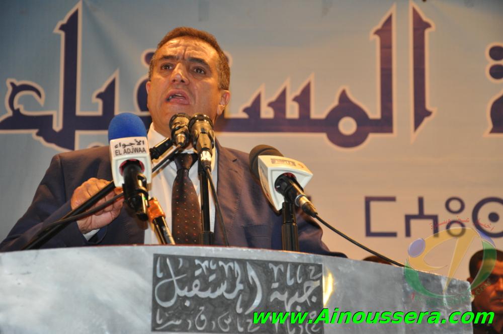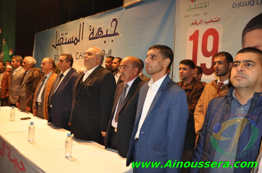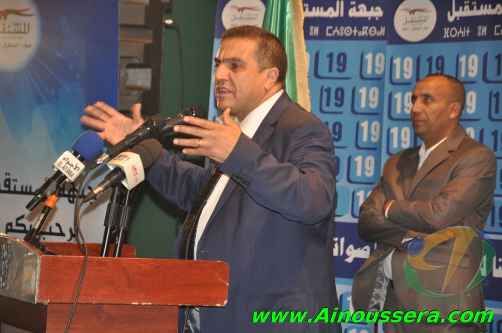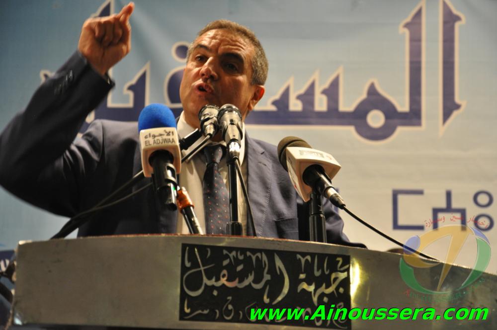 و في كلمته للحاضرين دعا رئيس حزب جبهة المستقبل عبد العزيز بلعيد إلى ضرورةالمساهمة في بناء جزائر قوية تكون دولة للحق والقانون بفضل اطاراتها وما تزخر به الجزائر من امكانيات تُؤهلها لفرض نفسها لقيادة الامة العربية والدول الافريقية.