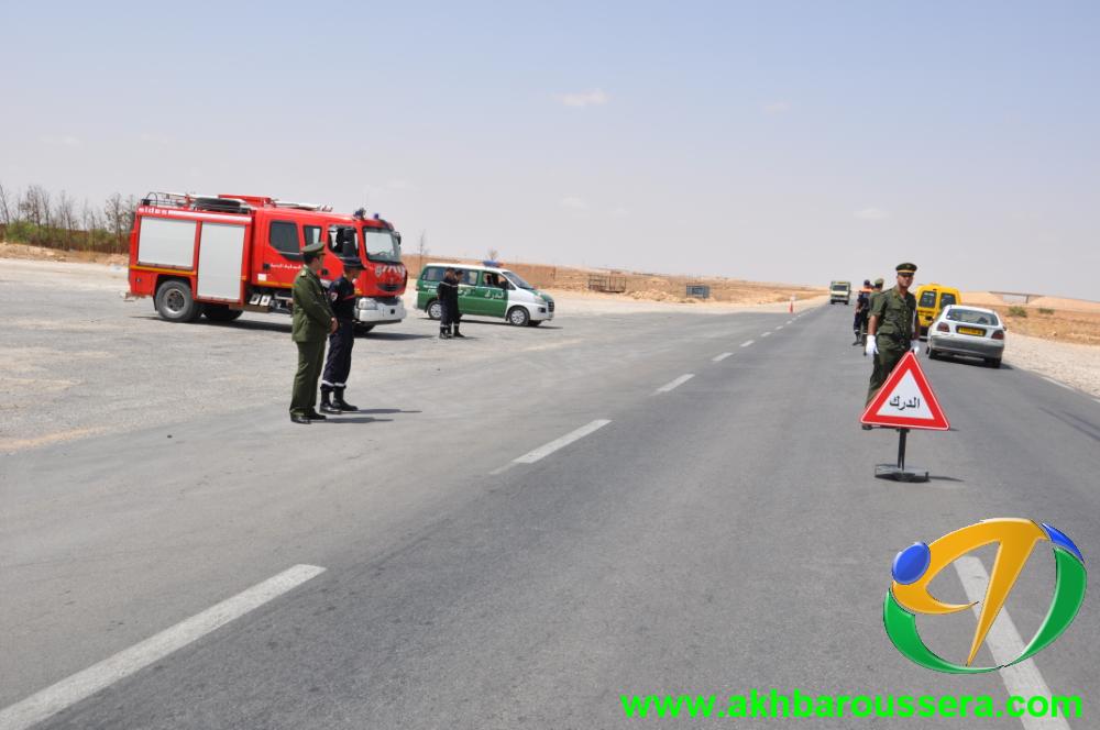 مواصلة للحملات التحسيسية التوعوية التي اطلقتها قيادة الدرك الوطني ، وفي اطار البرنامج المسطر ، قام افراد الكتيبة الإقليمية لعين وسارة ،حملة تحسيسية توعوية تحت شعار ” لعطلة صيف بدون حوادث مرور ” ، التزموا بقواعد السير”،والتي تمّ تنظيمها على مستوى الطريق الرابط بين سيدي لعجال وحاسي فدول، والتي كانت بالتنسيق مع الوحدة الثانوية لسيدي لعجال.