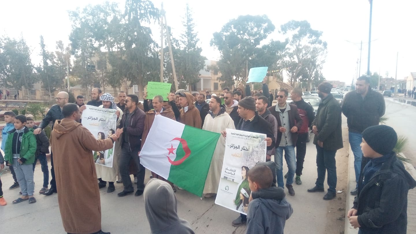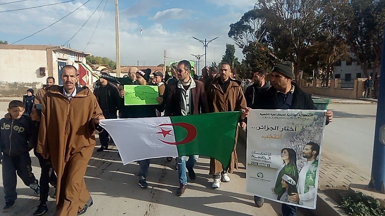 المشاركون في المسيرة رفعوا شعارات ورددوا عبارات مدعمة للمؤسسة العسكرية وداعيين الجميع للمشاركة في الإنتخابات.
