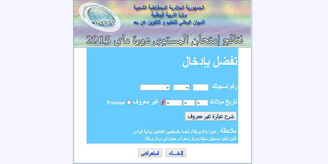 للاطلاع على نتائج اثبات المستوى دورة ماي 2015