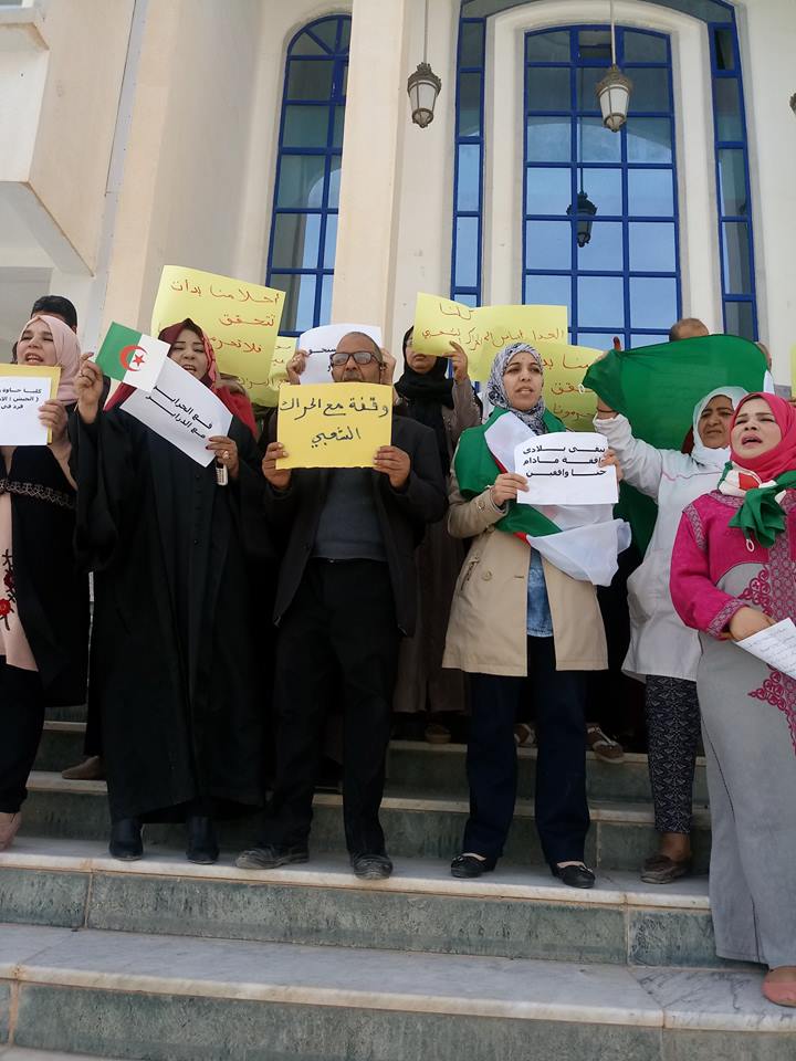 وقد أكد عمال المحكمة دعمهم ووقوفهم المطلق إلى جانب مطالب الحراك الشعبي، مطالبين خلالها بتحقيق مطالب الشعب المرفوعة في الحراك الشعبي المستمر منذ 22 فيفري الماضي.