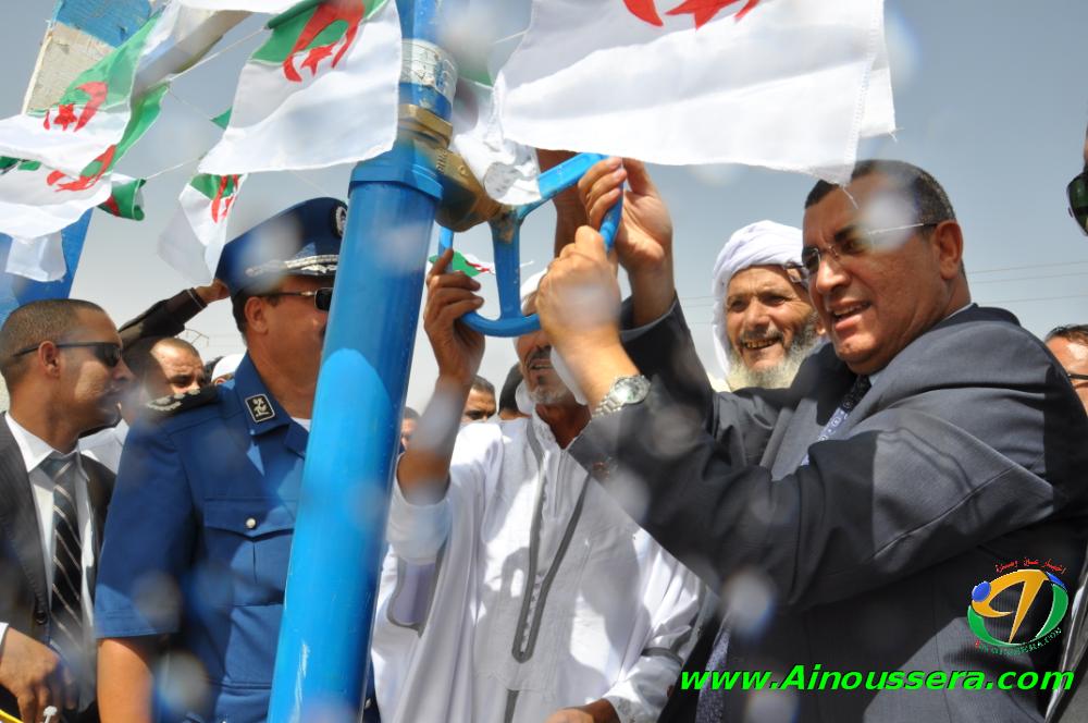قام السيد ” عبد القادر جلاوي ” والي الجلفة صبيحة اليوم بزيارة لبلدية عين أفقة من أجل إعطاء إشارة انطلاق التموين بالماء الشروب ، حيث رافقه كل من رئيس المجلس الشعبي الولائي ” بلخضر نعوم ” والسلطات المحلية المدنية والأمنية ، حيث كانت البداية بالوقوف عند آبار منطقة ” أولاد سعيد ” التي ستزود كلا من بلديتي حد الصحاري وعين أفقه بالماء الشروب ، حيث قام بداية من هذه المنطقة باعطاء اشارة انطلاق محطة الضخ لعين افقه اين تم وضع حيز الخدمة بئرين بمنسوب اجمالي 40 لتر في الثانية والذي سيرفع نسبة التزود من 59 لتر للمواطن في اليوم الى 358 لتر في اليوم كما سيتم رفع المنسوب الاجمالي من 2606 متر مكعب في اليوم الى 6220 متر مكعب .
