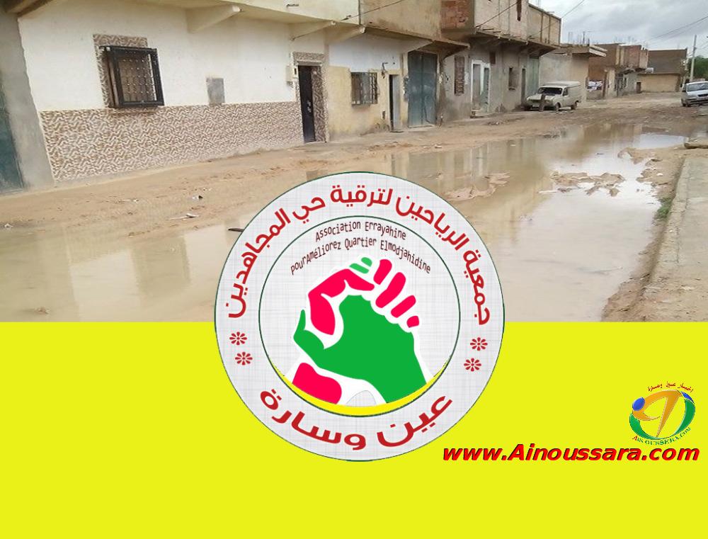 جددت جمعية ” الرياحين ” لحي المجاهدين بعين وسارة مطلبها للسلطات المحلية قصد التدخل العاجل من اجل التكفل بانشغالاتهم ومشاكلهم، من خلال المراسلة الموجهة للسيد والي ولاية الجلفة والتي تحوز ” أخبار عين وسارة ” نسخة منها والمتضمنة المطالبة بتسريع وتيرة الأشغال بمشروع التهيئة الحضرية الذي يعرفه مجمع ذراع النيسان منذ سنتين ، خاصة وضعية الطرقات وقنوات الصرف الصحي والانارة العمومية حيث يعاني الحي حالة من الفوضى بسبب الأشغال المتأخرة التي أدت إلى تشكل برك كبيرة من المياه خلال الأيام القليلة الماضية وقبلها انتشار كثيف للغبار بسبب تأخر عمليات التزفييت.