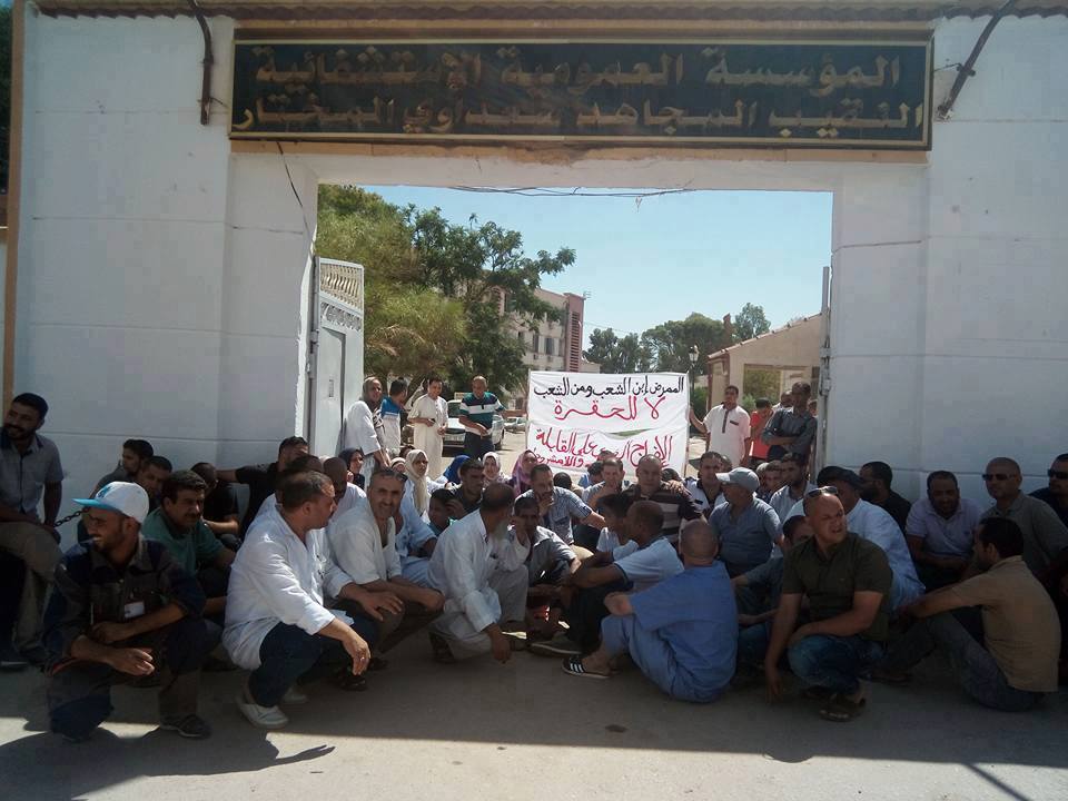 تتواصل احتجاجات عمال الصحة بالمؤسسة العمومية الاستشفائية المجاهد ” سعداوي المختار ” بعين وسارة لليوم الثاني على التوالي ، تضامنا مع زملائهم المحبوسين على ذمة التحقيق في قضية وفاة المرأة الحامل وابنها ، حيث طالب المحتجون بضرورة نزول وزير الصحة شخصيا اليهم قصد الوقوف شخصيا على ما يعانيه قطاع الصحة بكامل تراب الولاية من نقص في التجهيزات والاطباء الاخصائيين وغيرها من النقائص.