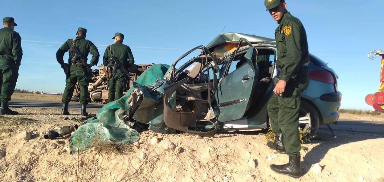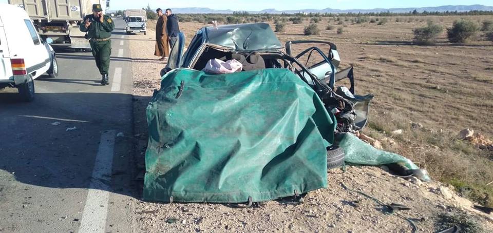 شهد الطريق الولائي رقم 167 بالمخرج الشرقي لمدينة عين وسارة باتجاه حد الصحاري وبالضبط بمنطقة ذراه السواري حادث مرور أليم ، تمثل في اصطدام مباشر بين سيارة سياحية من نوع بيجو 206 وشاحنة من نوع سوناكوم k 66 ، حيث كانت الحصيلة وفاة شخصين في عين المكان يبلغان 13 و28 سنة ، وجريحين من بينهم امراة 19 سنة حالة حرجة ، ورجل 38 سنة اصاباته خفيفة.
