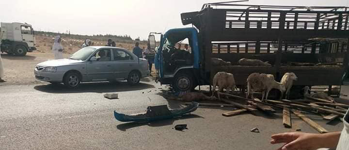 إثر اصطدام شاحنتين الاولى بها أغنام و3 أشخاص والثانية شاحنة ذات مقطورة ، تسبب في وفاة رجل بعين المكان واصابة شخصين بجروح متفاوتة الخطورة .