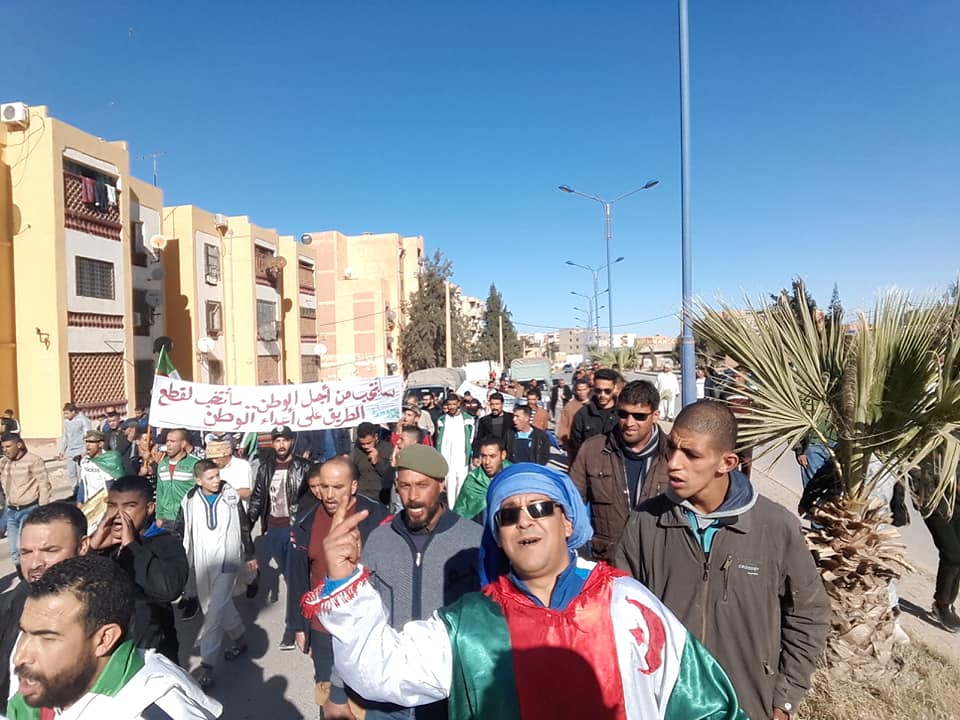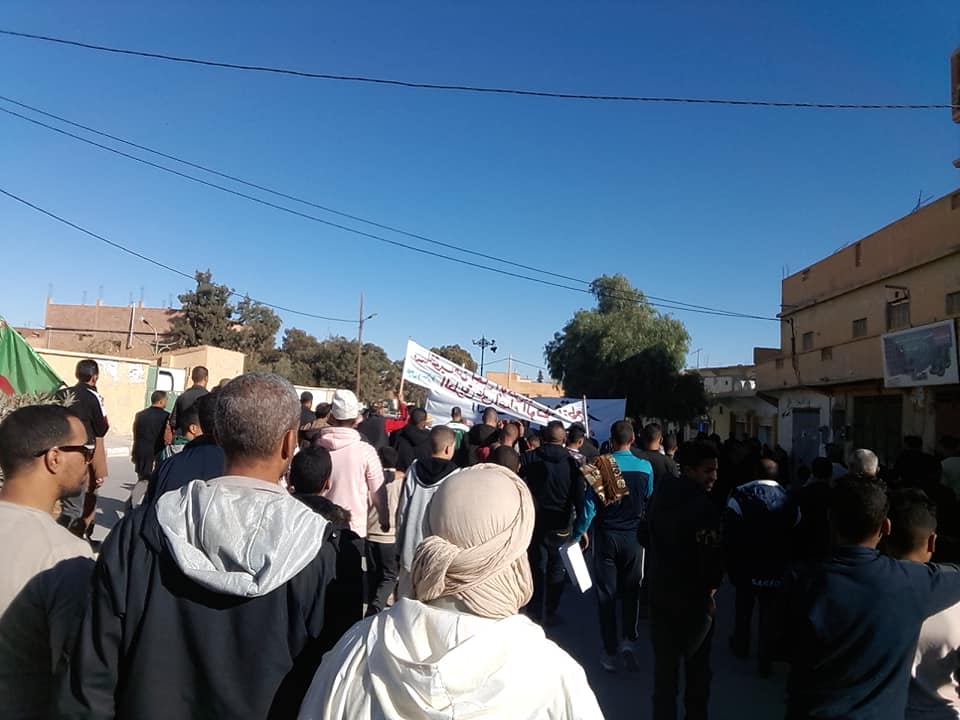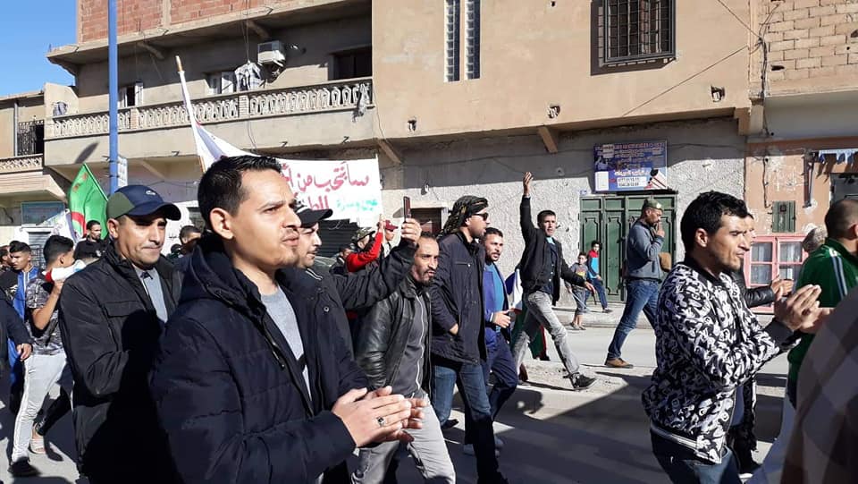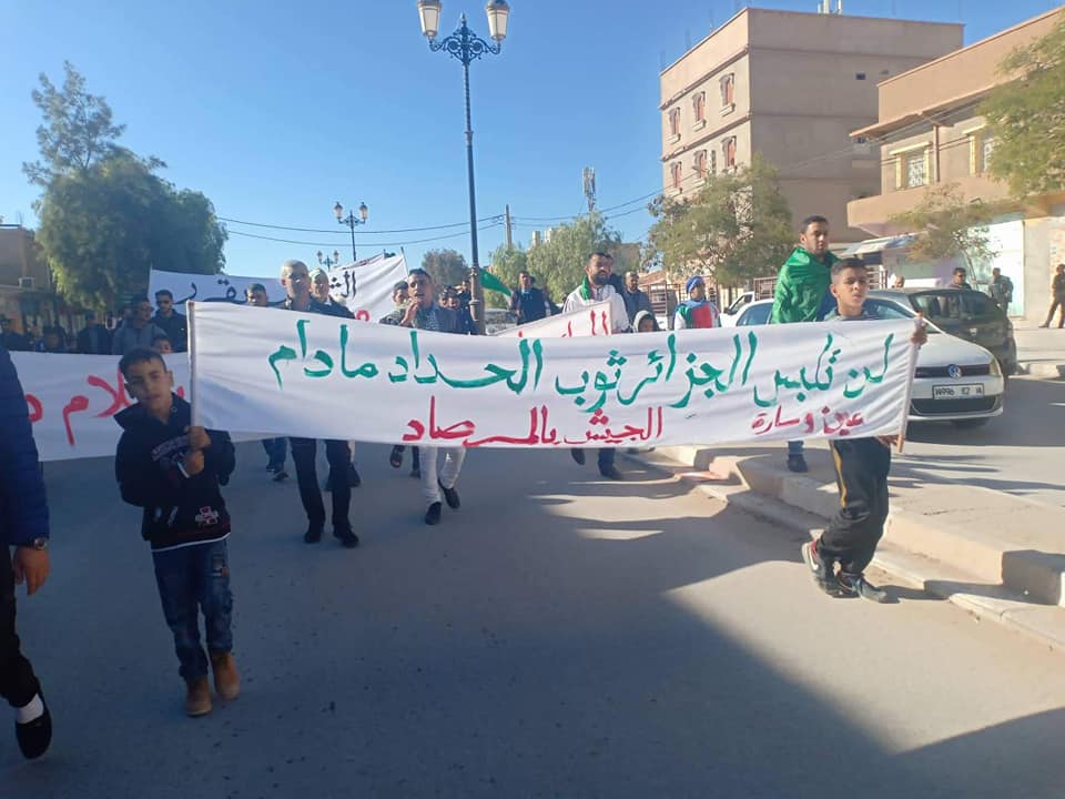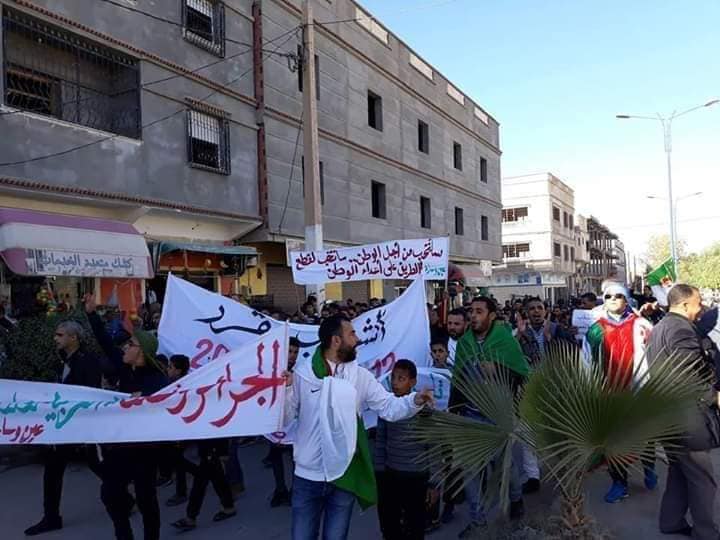وانطلقت المسيرة السلمية بعد صلاة الجمعة من وسط المدينة والتي شارك فيها مواطنون يمثلون مختلف فعاليات المجتمع المدني حيث رددوا شعارات مؤيدة لتنظيم الانتخابات الرئاسية ومساندة للجيش الوطني الشعبي.