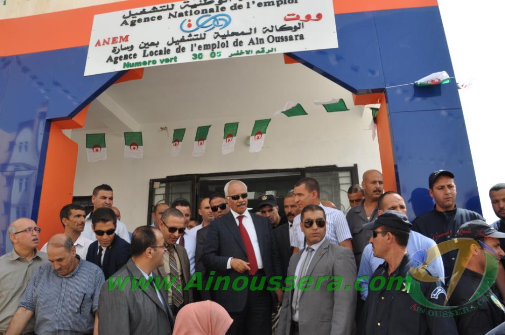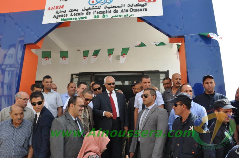 عشية الاحتفال بالذكرى 56 لعيدي الاستقلال والشباب المصاف لـ 05 جويلية من كل سنة ، أشرف صبيحة اليوم والي ولاية الجلفة السيد ” قنفاف حمنة ” بمعية رئيس المجلس الشعبي الولائي على وضع المقر الجديد للوكالة المحلية للتشغيل بعين وسارة حيز الخدمة وذلك بحضور مدير التشغيل السيد ” مسعودي عبد العزيز ” ورئيس الوكالة الولائية للتشغيل السيد ” فريد قراش ” والسلطات المحلية المدنية ، الامنية والعسكرية  وعدد من المدراء التنفيذيين ونواب البرلمان والمجلس الشعبي الولائي.