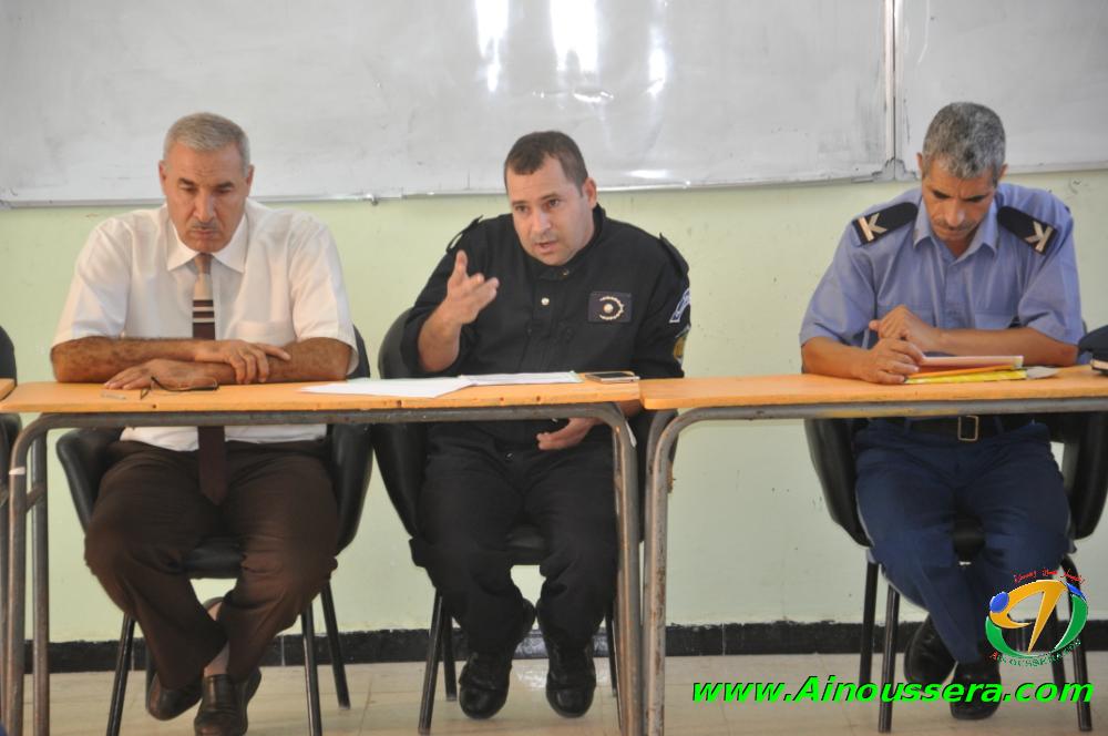 احتضنت متوسطة بوزيداوي بن عزوز ندوة تحسيسية نشطها إطارات أمن دائرة عين وسارة ومدير المتوسطة وحضرها مجموعة من التلاميذ