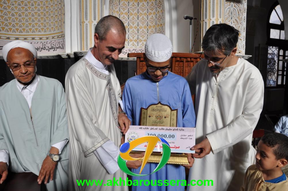 أشرف مدير الشؤون الدينية والاوقاف ” مفتاح شدادي ” أمسية أمس بعد صلاة العصر على الحفل الختامي لجائزة المرحوم الحاج ” سليمان طالب ” لحامل كتاب الله في طبعتها الخامسة بمسجد الامام مالك ابن أنس ، بحضور عدد من المشائخ والأئمة وجمع من المواطنين .