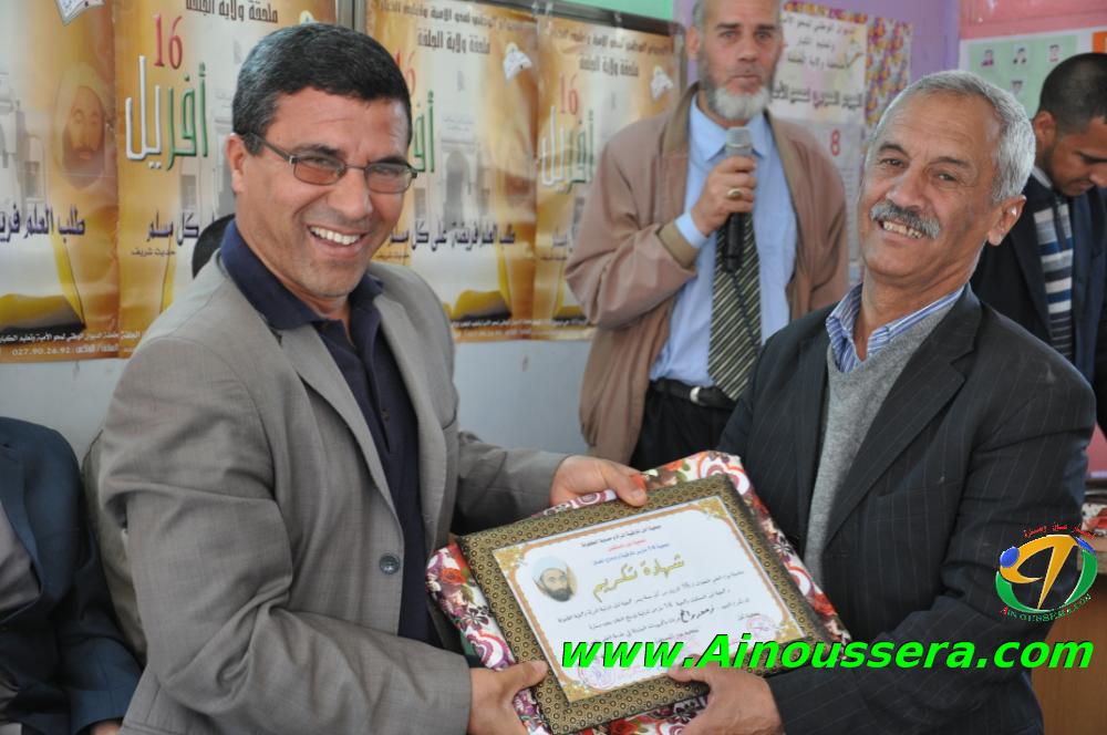 وفي الختام تم تكريم معاقين اثنين بتسليمهما كراسي متحركة من قبل جمعية 14 مارس وكذا تكريم عدد من الأساتذة والمعلمين المتقاعدين.