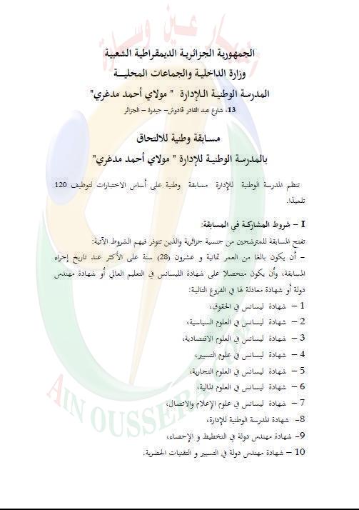 تصفّح المقالات والي الجلفة السيد عبد القادر جلاوي يعقد جلسة لعرض حصيلة مشاريع سنة 2014 لمختلف القطاعات. النتائج النهائية لمسابقات المؤسسة العمومية للصحة الجوارية بعين وسارة.