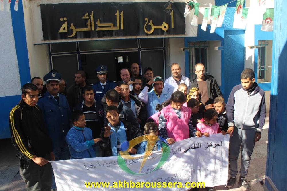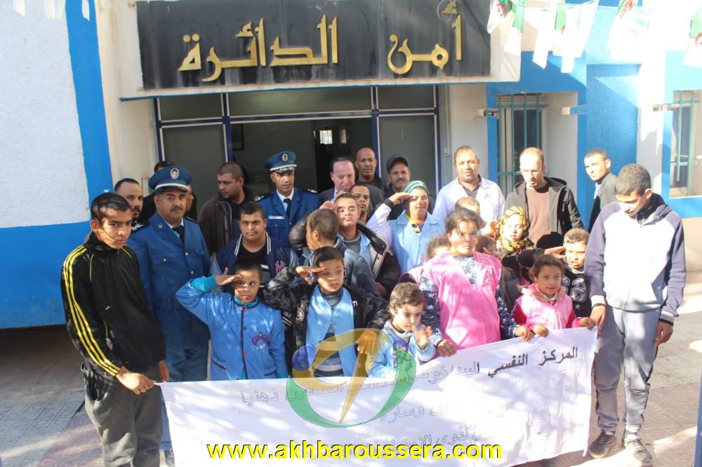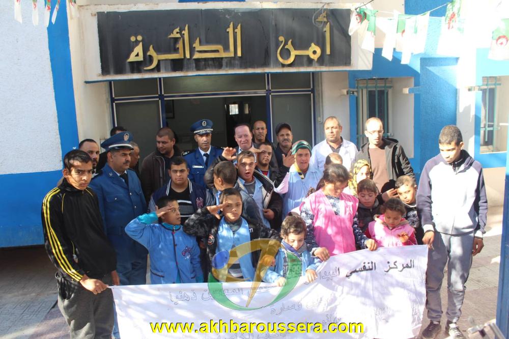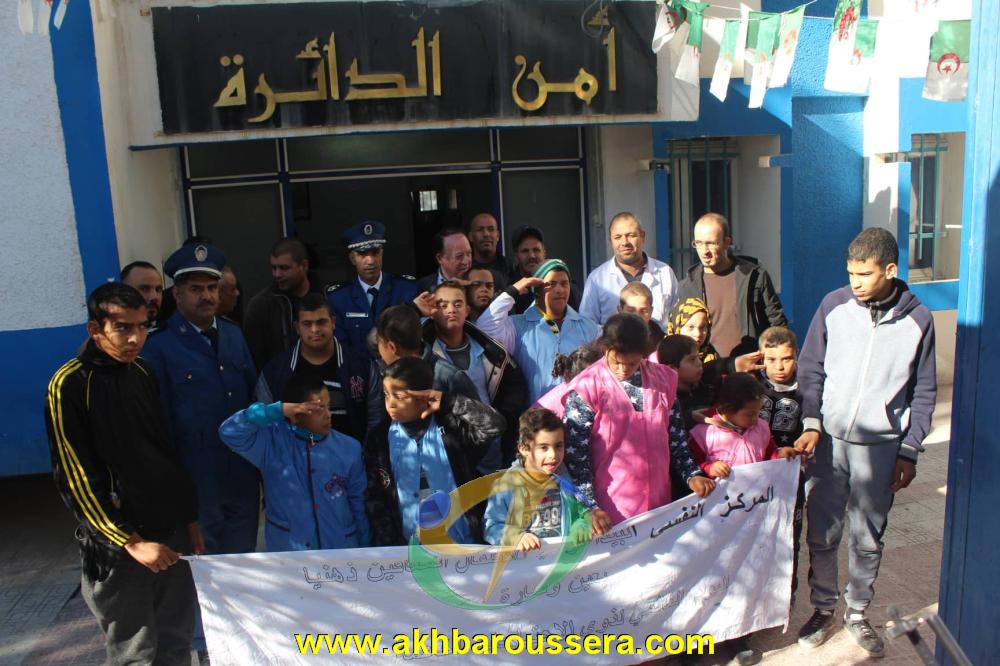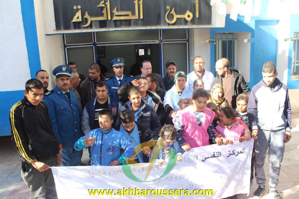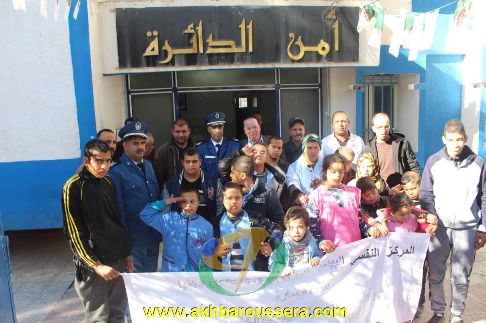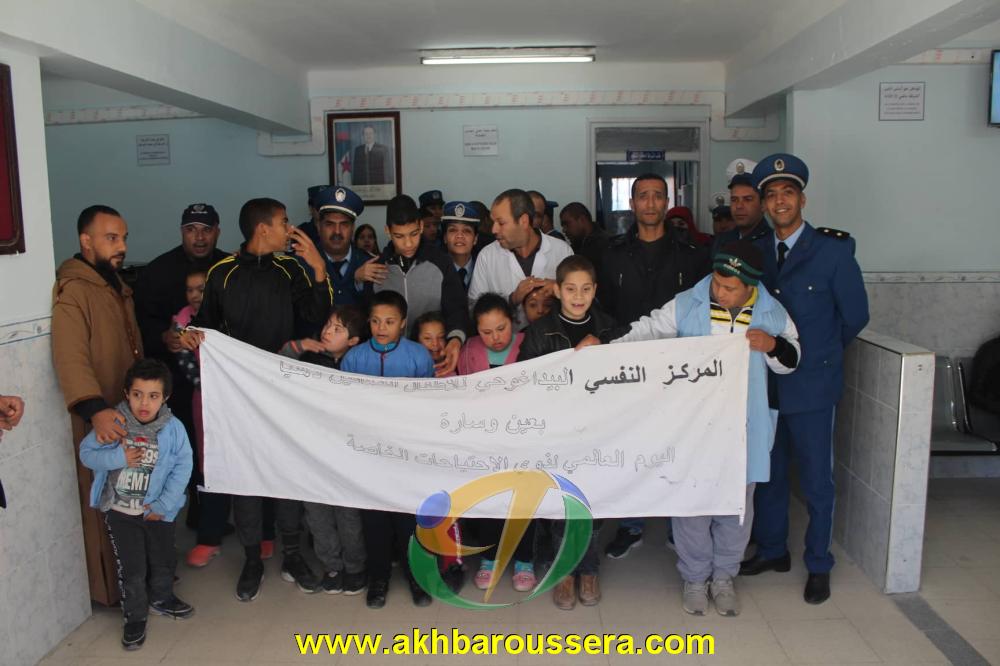 في إطار مساعيها الرامية إلى تجسيد مبدأ الشرطة الجوارية وبمناسبة إحياء اليوم العالمي لذوي الاحتياجات الخاصة المصادف للثالث ديسمبر من كل سنة وتجسيدا للشراكة مع مختلف الفاعلين في المجتمع ، سطرت مصالح أمن دائرة عين وسارة برنامجا للاحتفال بهذه المناسبة أشرف عليه رئيس أمن الدائرة رفقة عدد من إطارات الشرطة، حيث تم استضافة أطفال المركز النفسي البيداغوجي بمقر أمن الدائرة وبه وجدوا استقبالا حارا من قبل كل الاطارات ، وقد تم تعريفهم بمختلف المصالح والموظفين .