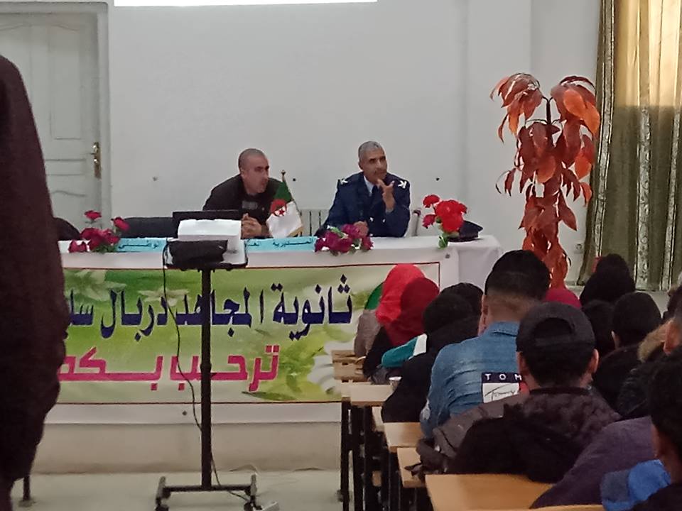 لا تزال مصالح امن دائرة عين وسارة تواصل برنامج نشاطاتها التحسيسية والتوعوية حول مخاطر الاستعمال السيئ للانترنت وتعاطي المخدرات ، حيث كان الموعد خلال الاسبوع المنصرم مع تلاميذ الطور المتوسط والثانوي اين قام اطارات من مصلحة التكوين بتنشيط لقاءات مع تلاميذ متوسطة ابن باديس وتلاميذ ثانوية دربال سليمان.