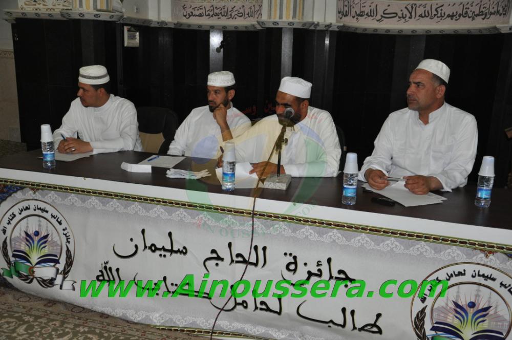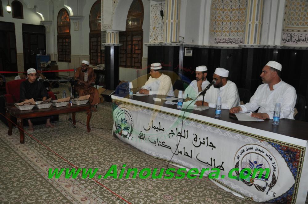 احتضن مسجد الامام مالك ابن انس أمسية الأمس بعد صلاة التراويح الدورة النهائية لمسابقة المرحوم الحاج ” سليمان طالب ” لحامل كتاب الله في طبعتها الرابعة ، والتي حضرها أئمة المدينة وجمع غفير من المواطنين.