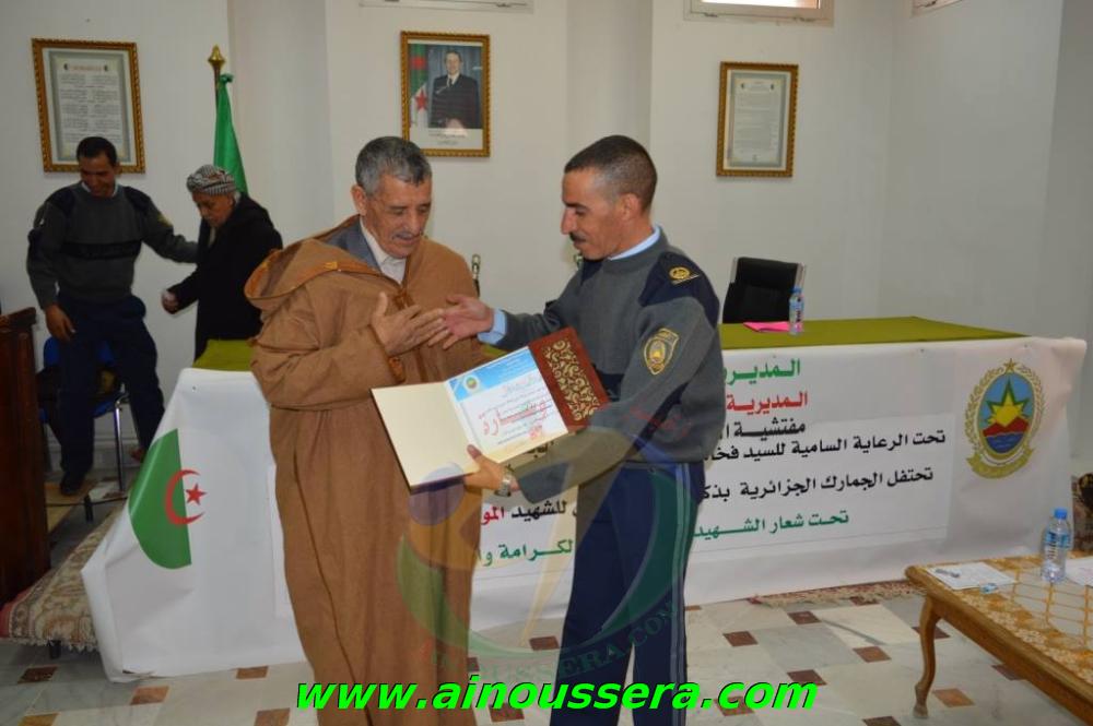 وفي الختام تم تكريم مدير المجاهدين والأسرة الثورية من طرف رئيس المفتشية بالنيابة والمفتش الرئيسي للفرق حساني إبراهيم وقابض الجمارك العمراوي لزهر.