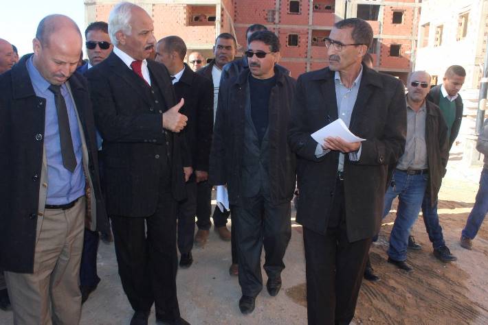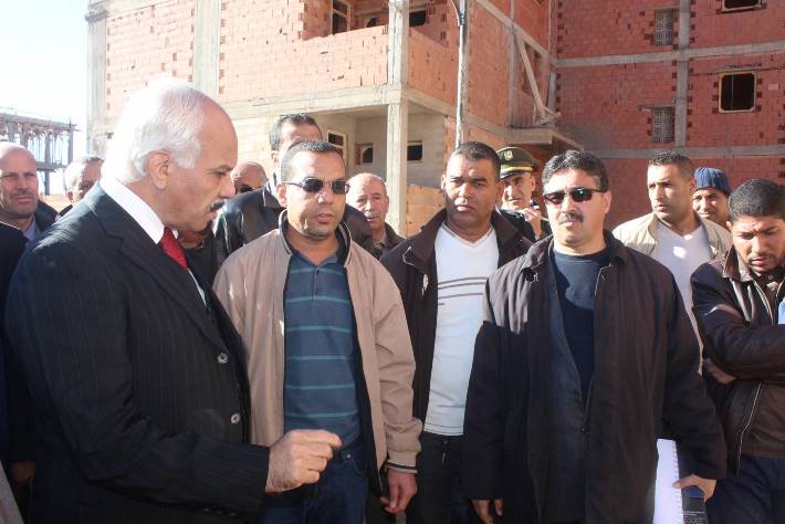 بداية الزيارة استهلها السيد الوالي بمعاينة مشروع السكنات الاجتماعية بطريق عين وسارة الذي يسير بوتيرة متباطئة حيث أعطى تعليمات صارمة بهدم أحد البنايات الغير مطابقة للمعايير التقنية المعمول بها حماية لأرواح المواطنين وأمر بهذا الصدد السيد الوالي بتقرير الخبرة و إعداد جدول زمني يضم توزيع مهام العمال يوميا وما يحتاج المشروع من مواد البناء على شكل “ورشة ذكية ” لتقوية المشروع وتسريع وتيرته.