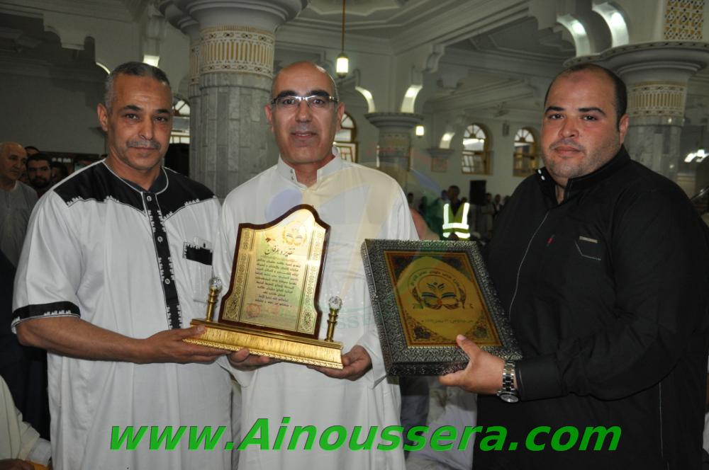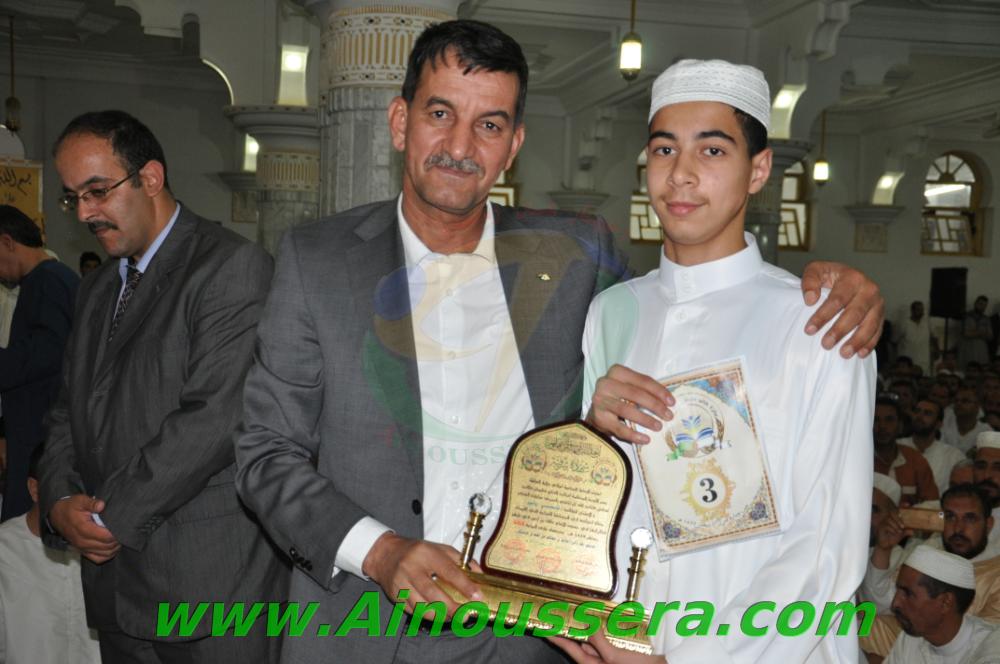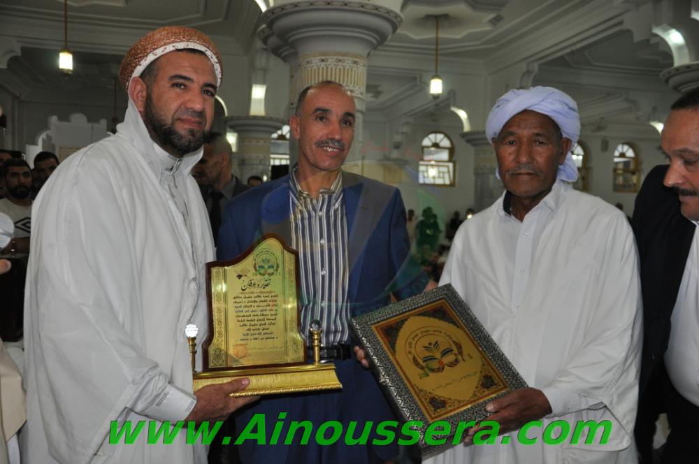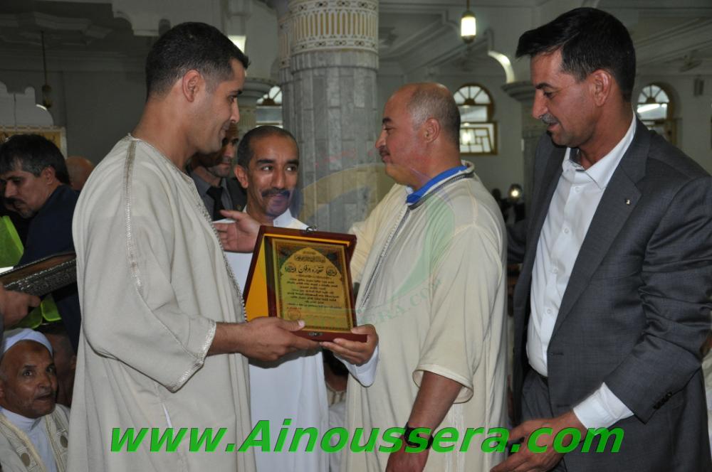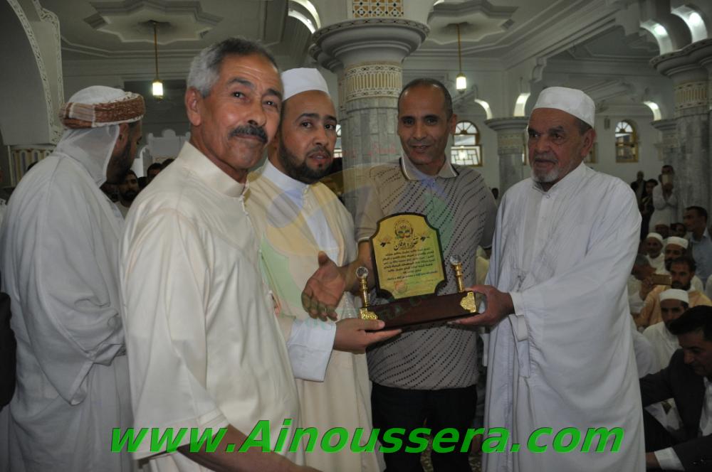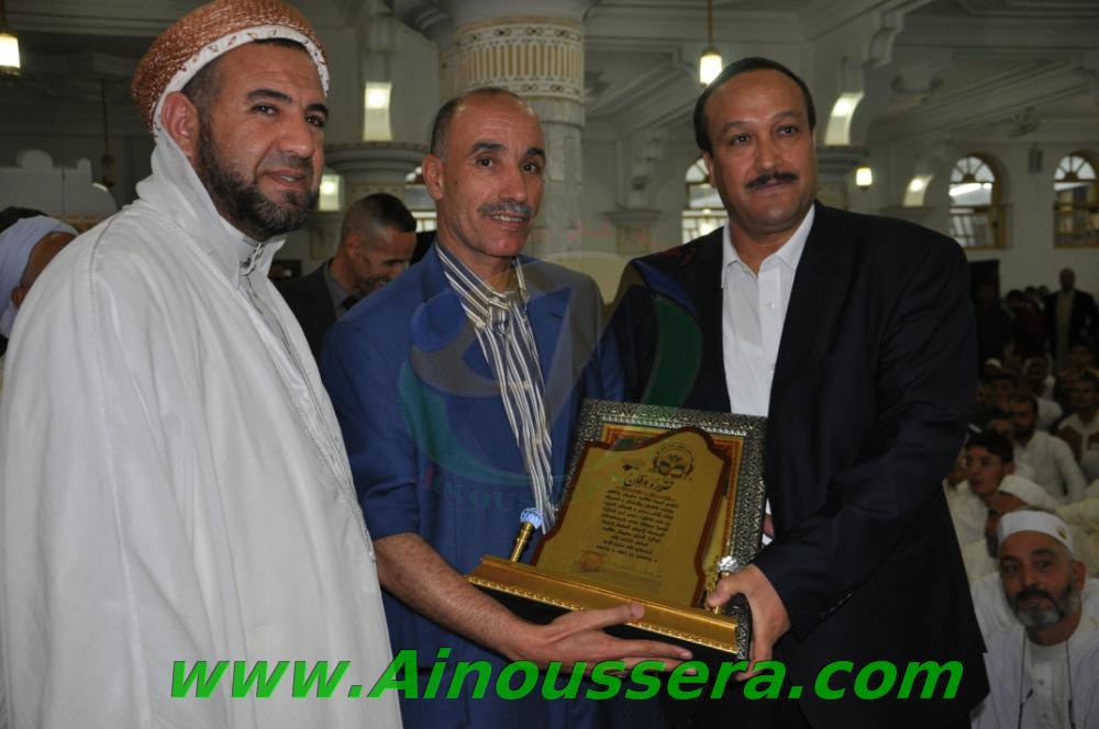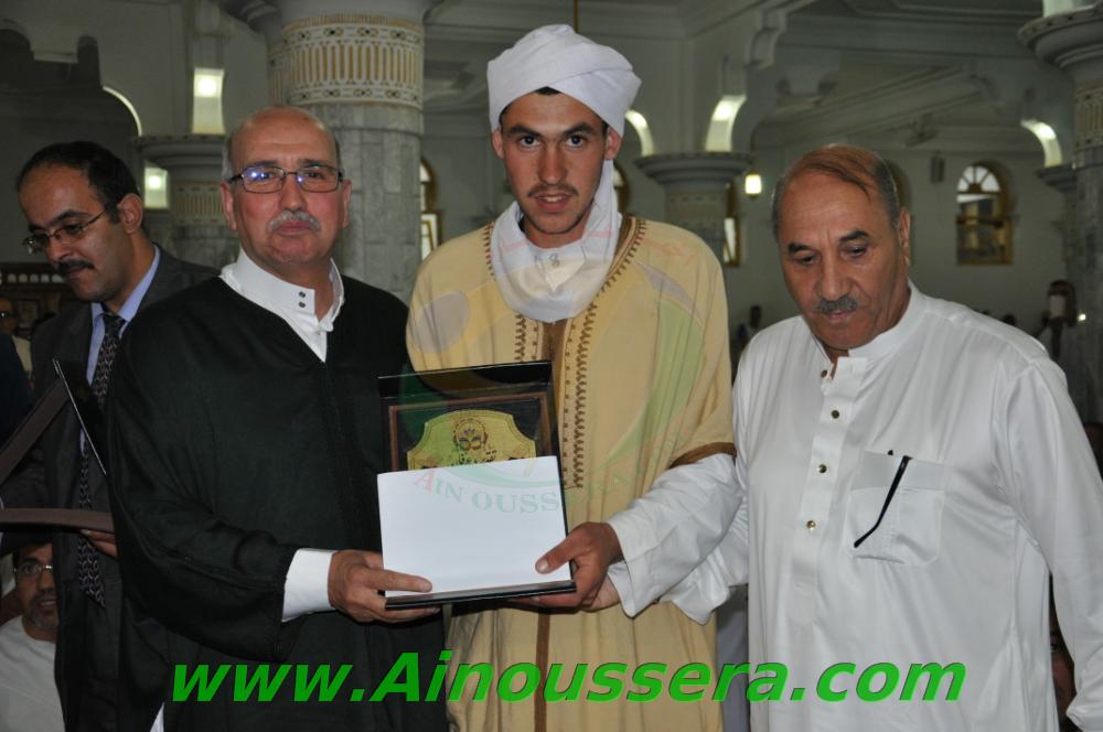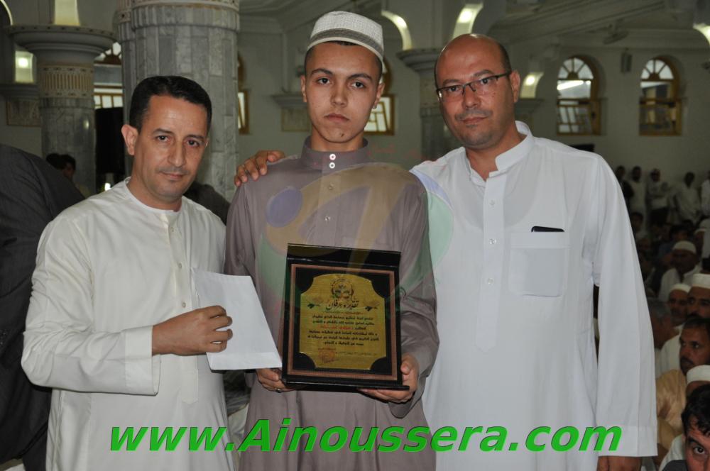 ليتم في ختام الحفل تكريم الطالب ” مطيار يوسف ” من بلدية عين وسارة ،الحائز على المرتبة الاولى في المسابقة من قبل السيد والي الولاية الذي سلمه درع التكريم ومبلغ (500.000 د.ج ) 50 مليون سنتيم ، كما تم تكريم الحائز على المرتبة الثانية الطالب ” صكصك محمد ”  من بلدية تعظميت بمبلغ ( 300.000 د.ج ) 30 مليون سنتيم وتكريم الطالب ” قاسمي ياسين ” من بلدية حاسي بحبح بمبلغ ( 200.000 د.ج ) 20 مليون سنتيم ، وتكريم معلم الطالب ” مطيار يوسف ” بتذكرة سفر للبقاع المقدسة لآداء مناسك عمرة كاملة التكاليف.