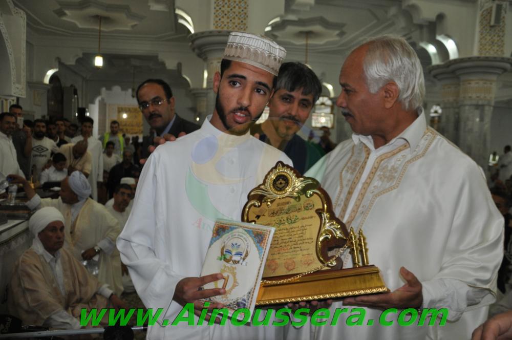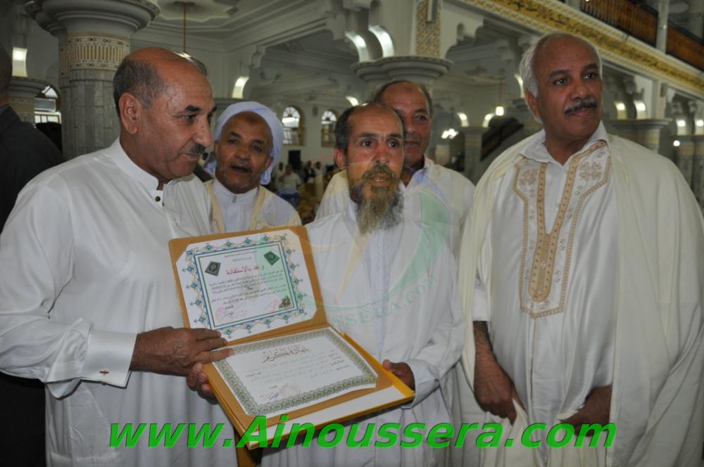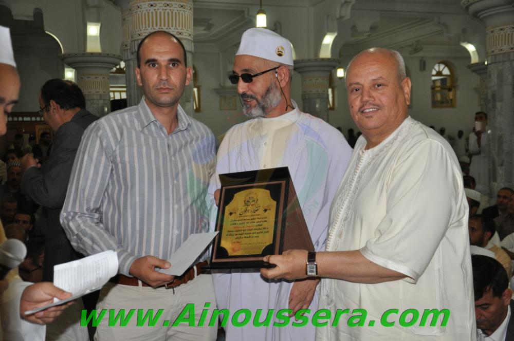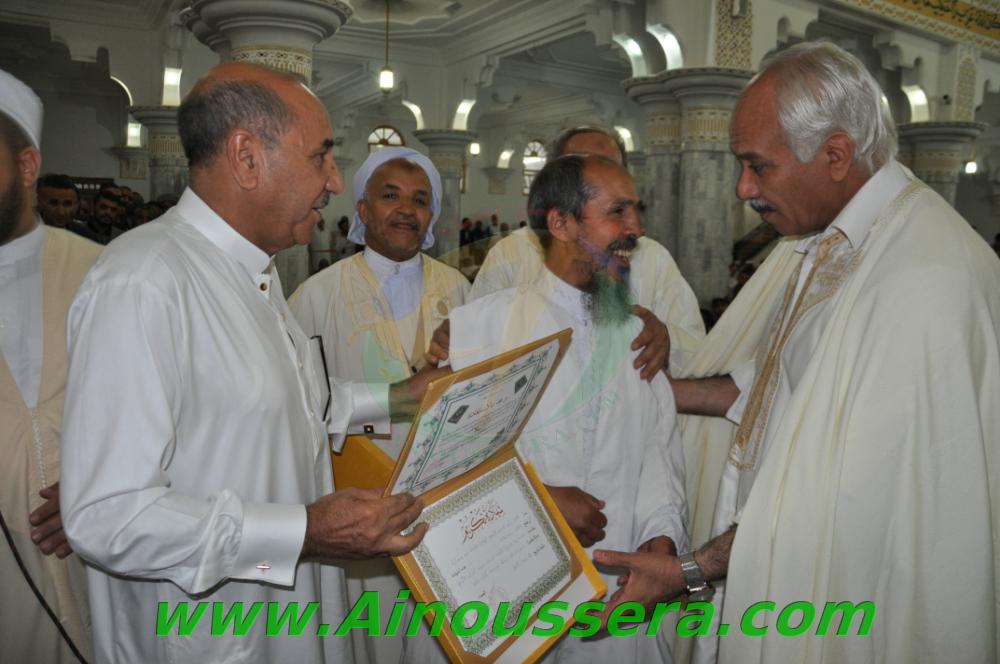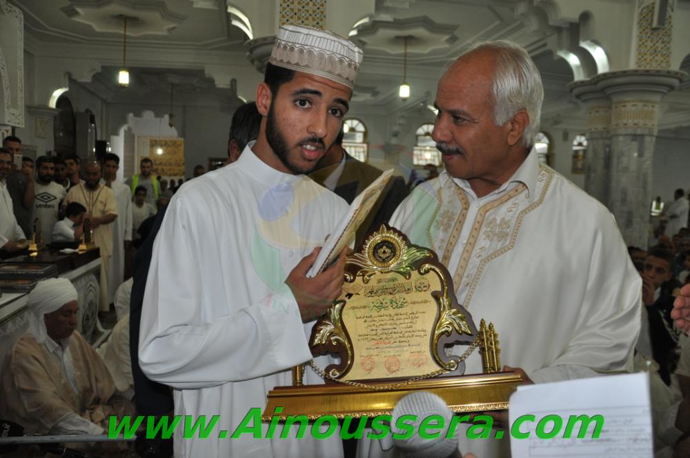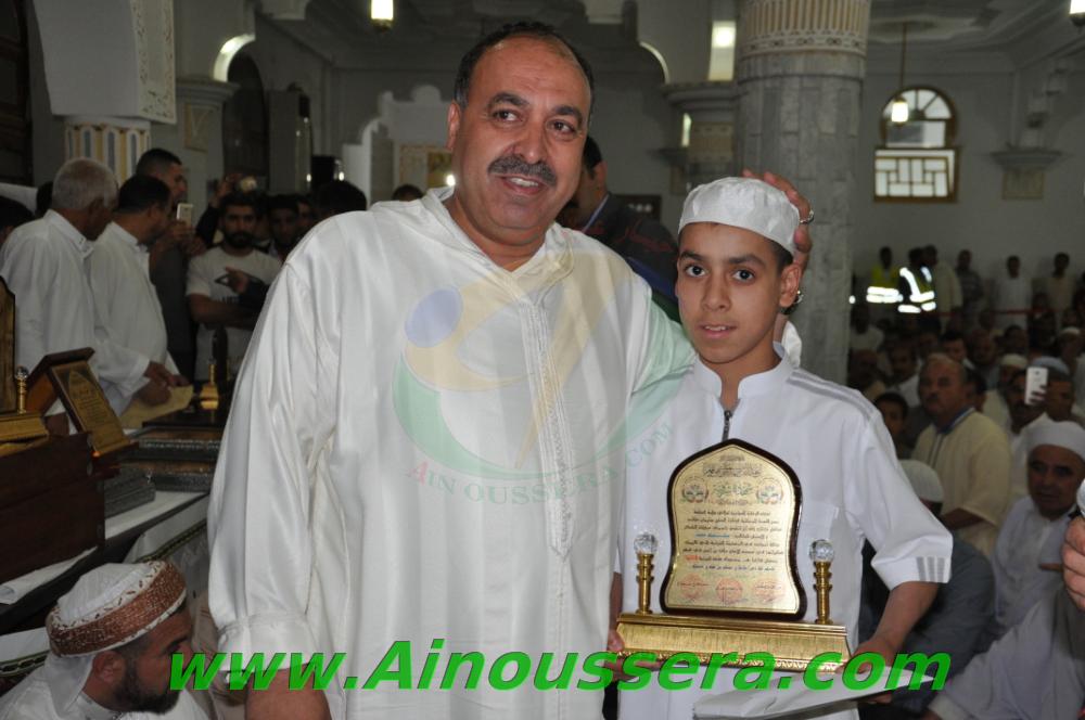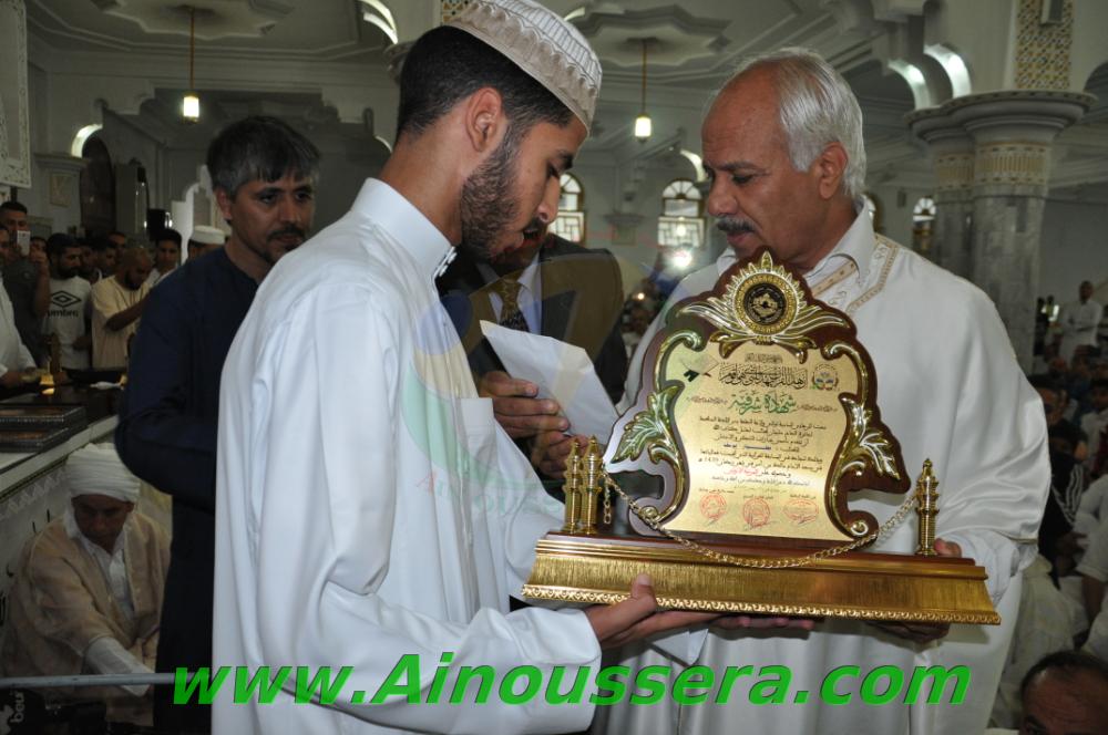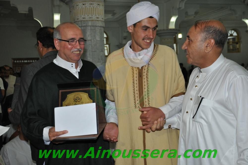 ليتم في ختام الحفل تكريم الطالب ” مطيار يوسف ” من بلدية عين وسارة ،الحائز على المرتبة الاولى في المسابقة من قبل السيد والي الولاية الذي سلمه درع التكريم ومبلغ (500.000 د.ج ) 50 مليون سنتيم ، كما تم تكريم الحائز على المرتبة الثانية الطالب ” صكصك محمد ”  من بلدية تعظميت بمبلغ ( 300.000 د.ج ) 30 مليون سنتيم وتكريم الطالب ” قاسمي ياسين ” من بلدية حاسي بحبح بمبلغ ( 200.000 د.ج ) 20 مليون سنتيم ، وتكريم معلم الطالب ” مطيار يوسف ” بتذكرة سفر للبقاع المقدسة لآداء مناسك عمرة كاملة التكاليف.