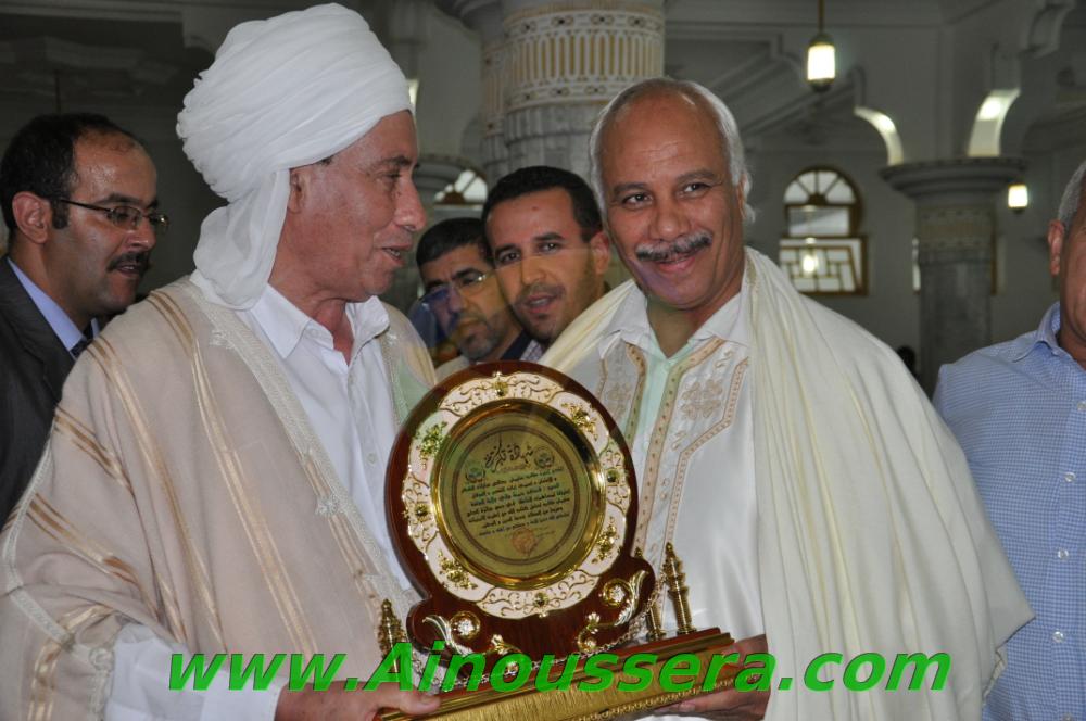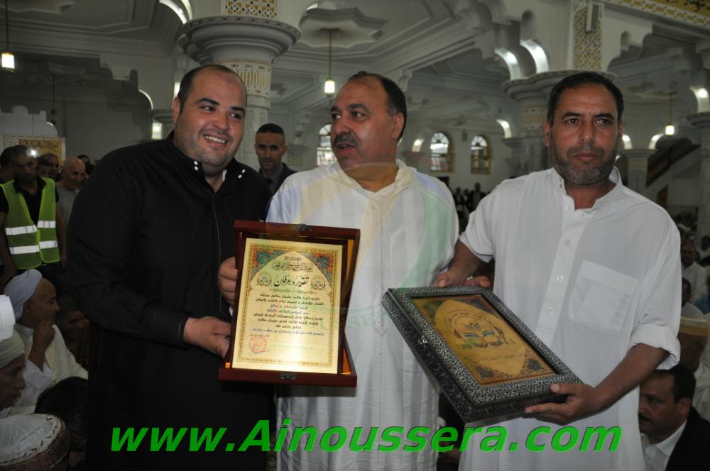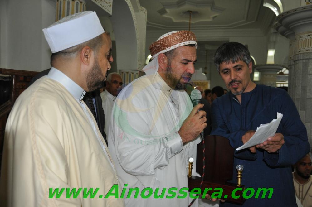 أشرف والي ولاية الجلفة السيد ” فنفاف حمنة ” أمسية أمس بعد صلاة التراويح على الحفل الختامي لجائزة المرحوم الحاج ” سليمان طالب ” في طبعتها الرابعة بمسجد الامام مالك ابن أنس ، حيث كان مرفوقا بالسيد رئيس المجلس الشعبي الولائي ومدير الشؤون الدينية والأوقاف وشيخ الزاوية المرزوقية والمدراء التنفيذيين والسلطات المحلية المدنية والأمنية لولاية الجلفة ودائرة عين وسارة وعدد من المشائخ والأئمة وممثلي المجتمع المدني وجمع من المواطنين .