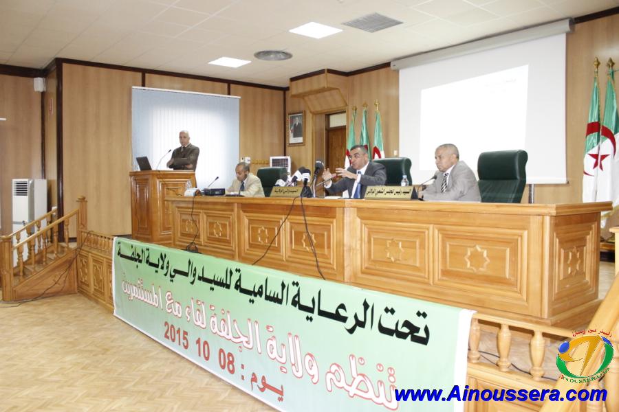احتضنت قاعة المحاضرات بمقر ولاية الجلفة يوم أمس أشغال الملتقى الخاص بالإستثمار تحت إشراف والي الجلفة السيد ” عبد القادر جلاوي ” برفقة رئيس المجلس الشعبي الولائي السيد ” بلخضر نعوم ”  ، وذلك بحضور المستثمرين والسلطات المحلية ، الأمنية والعسكرية والمدراء التنفيذيين والمنتخبون على مستوى البرلمان بغرفتيه وأعضاء المجلس الشعبي الولائي وكذا رؤساء الدوائر والبلديات والأسرة الاعلامية.