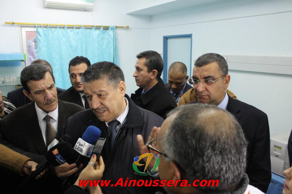 هذا وقد قام السيد الوزير بعدها بالوقوف على  مشروع انجاز مركز لتصفية الدم الذي تسير به الأشغال بوتيرة جيدة ، ليختتم الزيارة بلقاء فعاليات المجتمع المدني التي طالبت بانجاز مستشفى جديد وتوفير مناصب شغل وتدعيم المستشفى بالأطباء الأخصائيين وغيرها من المطالب.