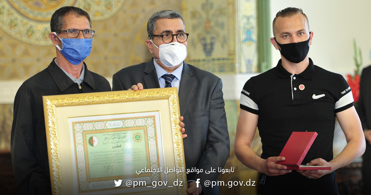 أسدى الوزير الأول عبد العزيز جراد، اليوم الخميس، باسم رئيس الجمهورية، عبد المجيد تبون، وسام “عشير” بعد الوفاة من مصف الاستحقاق الوطني، لثلاث ضحايا لوباء كورونا من السلك الطبي وهم الأستاذ سي أحمد مهدي والدكتورة بوديسة وفاء وسائق سيارة الاسعاف طالحي جمال، بالإضافة إلى الراحلة عائشة باركي رئيسة جمعية “اقرأ”.