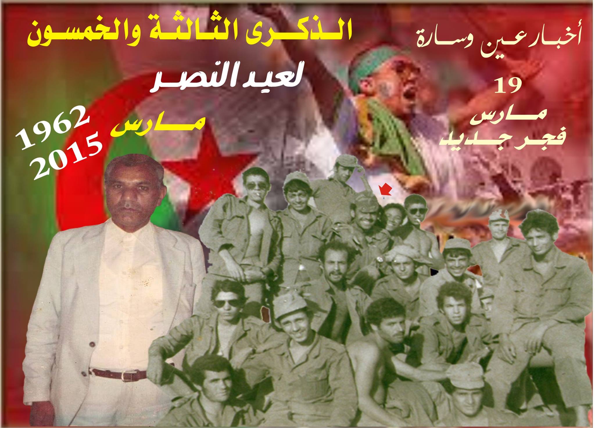 إن ذكرى 19 مارس 1962 وهي تعود اليوم بعد 53 سنة تكون هي اللبنة الأولى وحجرالزاوية في الإعلان عن جزائر حرة مستقلة ، وأخرجتها إلى الوجود ثورة التحرير الوطنية بتضحيات جسام فاقت المليون ونصف المليون شهيد. وإذ نتذكر اليوم الإعلان عن وقف إطلاق النار وبعد قرابة نصف قرن، فإننا نتذكر تاريخنا وبعض رجالاتنا ممن توقدت بصيرتهم فتفتقت عن الوصول إلى عهد جنّب الشعب الجزائري كثيرا من التضحيات الأخرى، فدفع بهذا الأخير إلى تأسيس دولة قوية مهابة الجانب ومثال لكثير من الشعوب التي أرادت هي الأخرى التحرر.